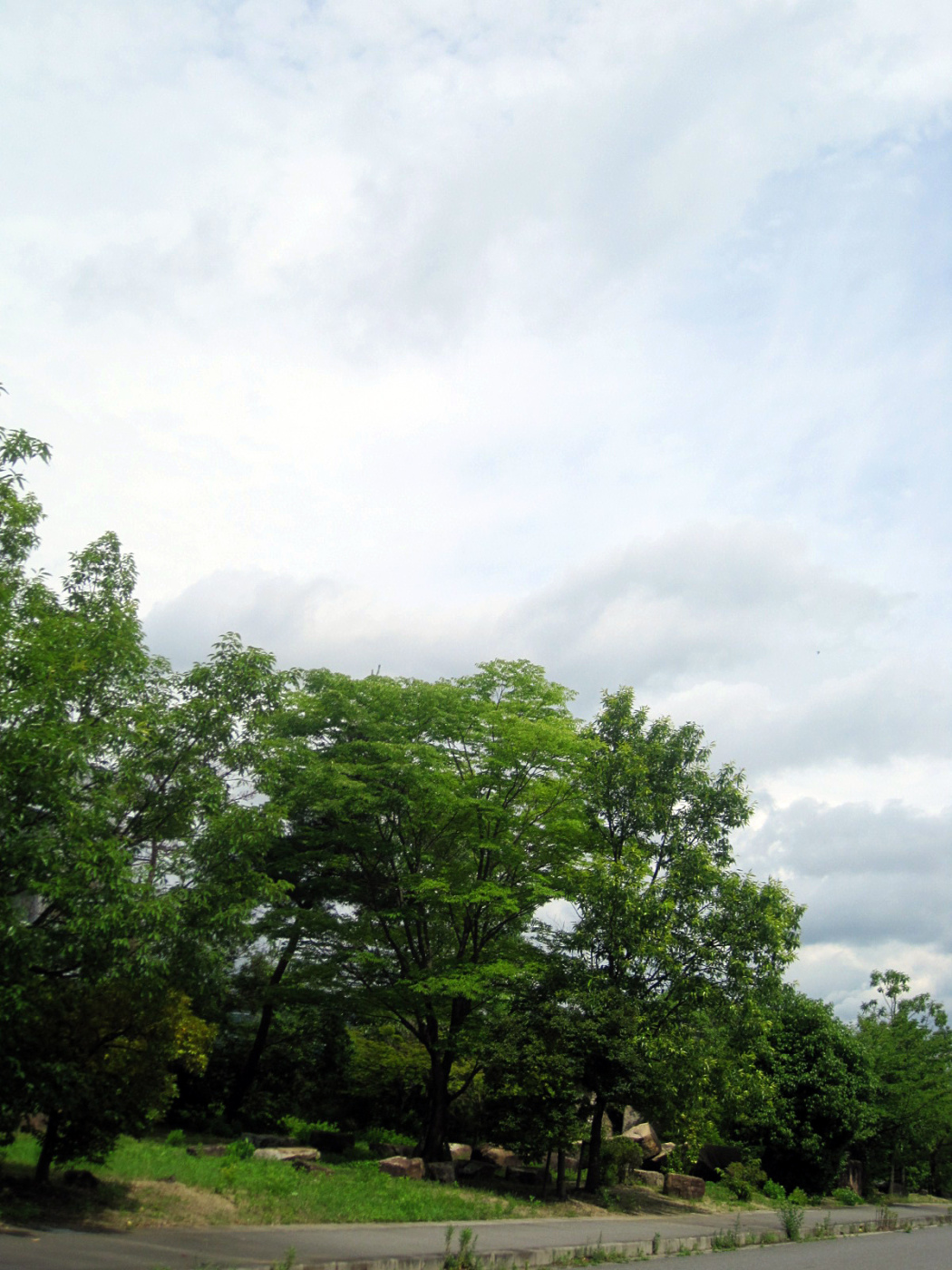 夜の雨の湿気が残っていて,とっても蒸し暑かったのが,だんだん,青空が見えてきました。