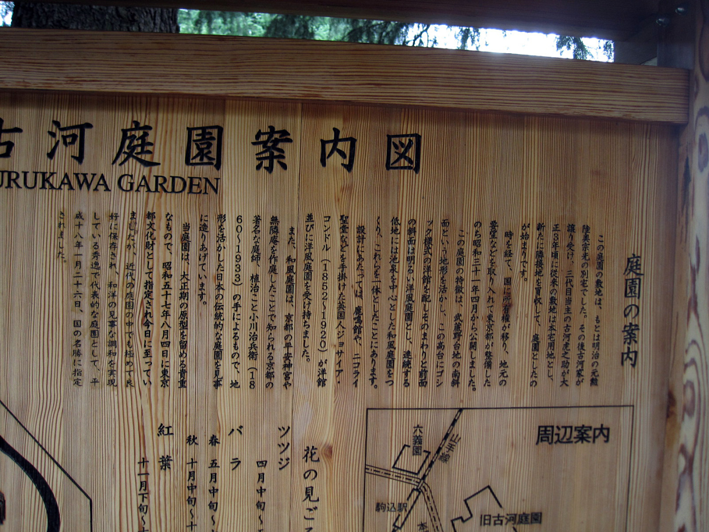 【その後、1917年(大正6年)に古河財閥3代目当主の虎之助(市兵衛の実子)によって西洋館と庭園が造られ現在の形となった。洋館と洋風庭園は、戦前に亘り多くの洋風建築を手掛けたジョサイア・コンドルにより設計された。また、日本庭園は近代日本庭園の先駆者として数多くの庭園を手掛けた小川治兵衛(植治)により作庭された。】だそうです。