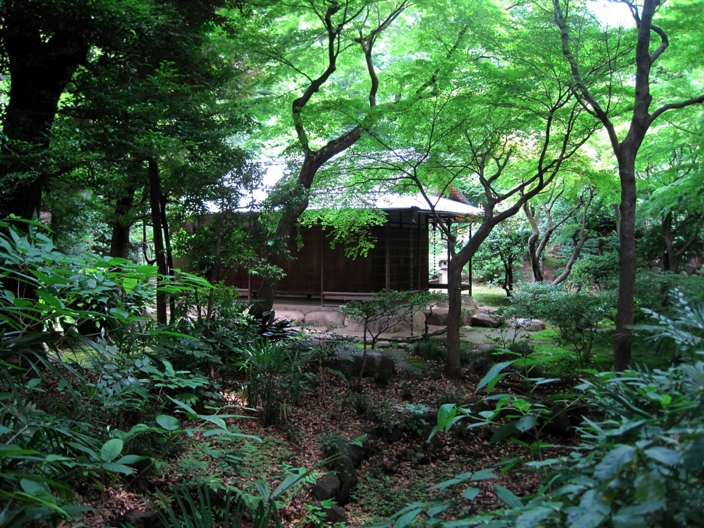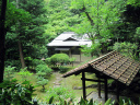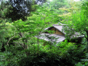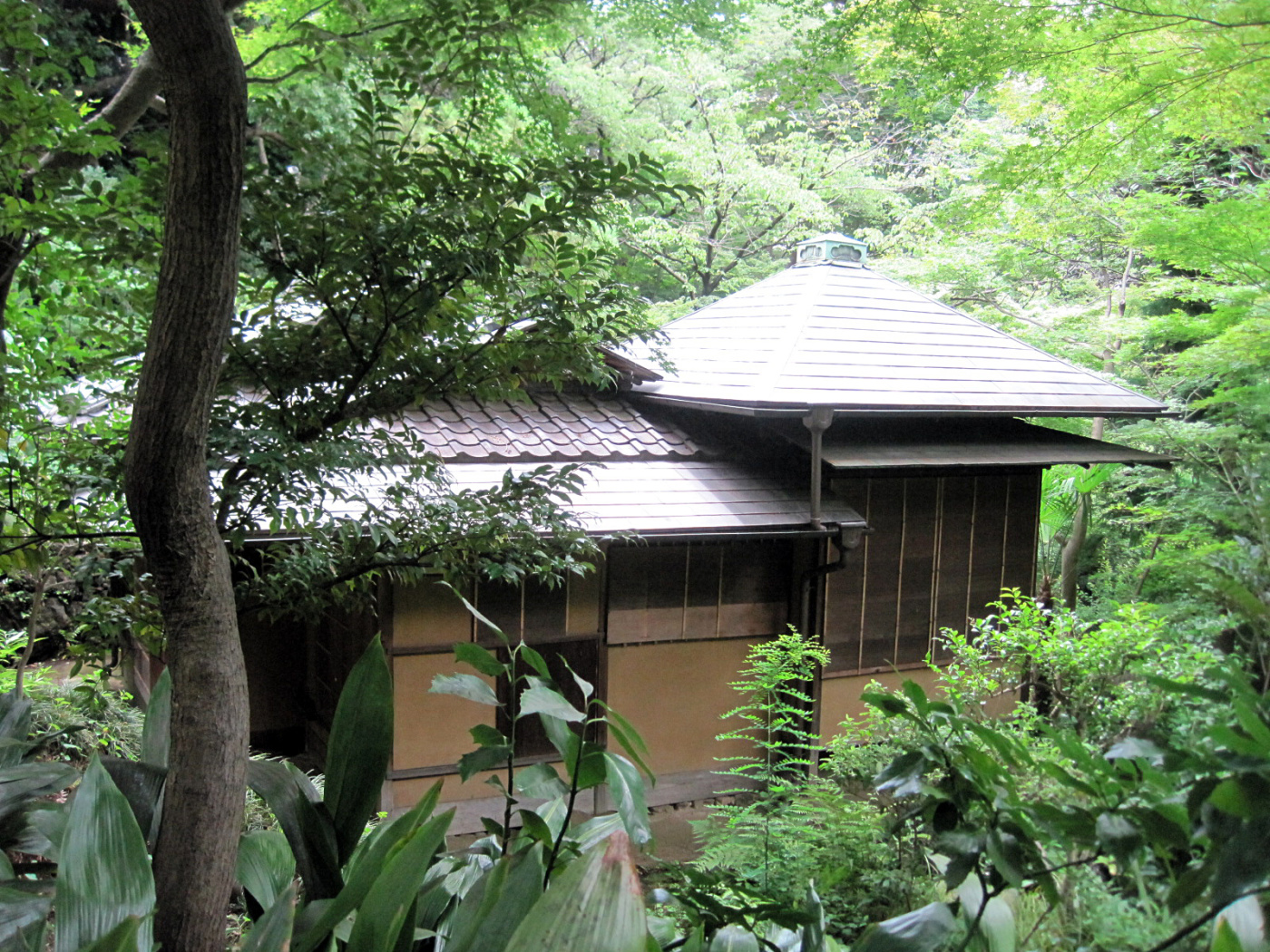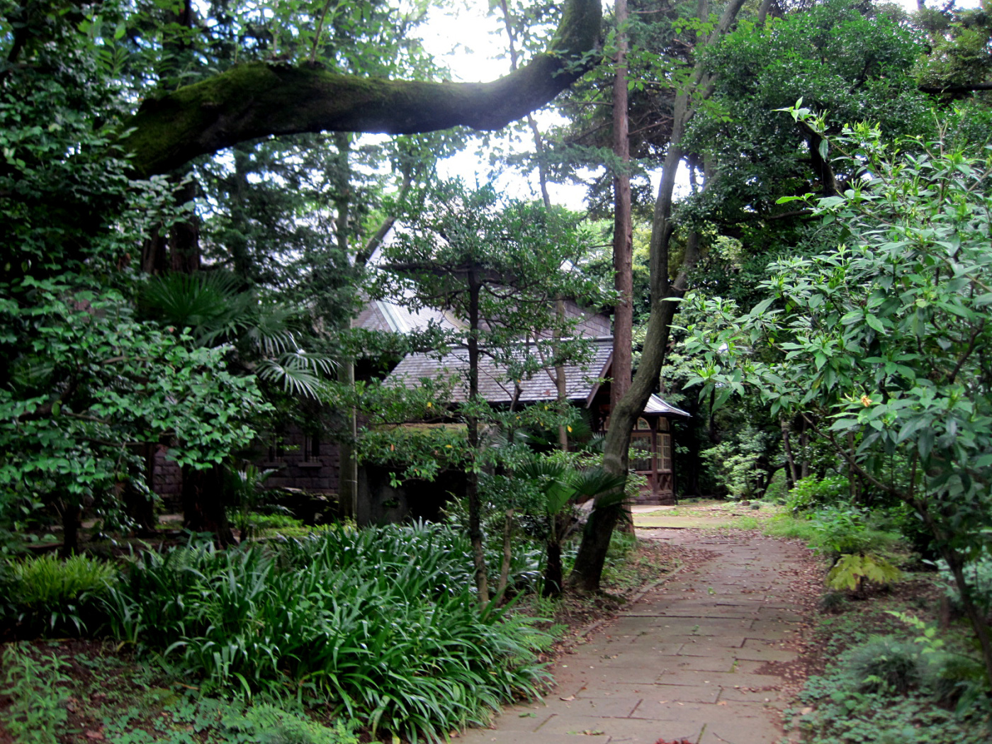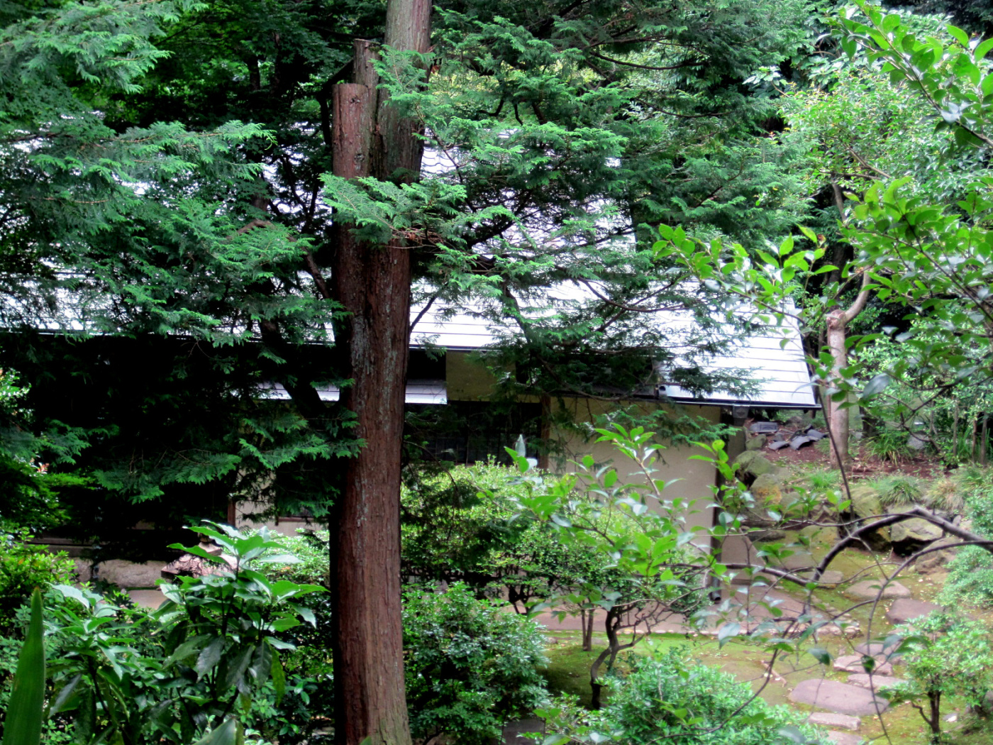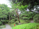 先ほどの滝から登ると,最初の建物とその横の広い芝生の処に出て・・・で,反対側を降りて行く途中には,茶室があります。