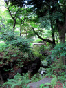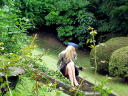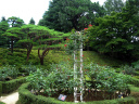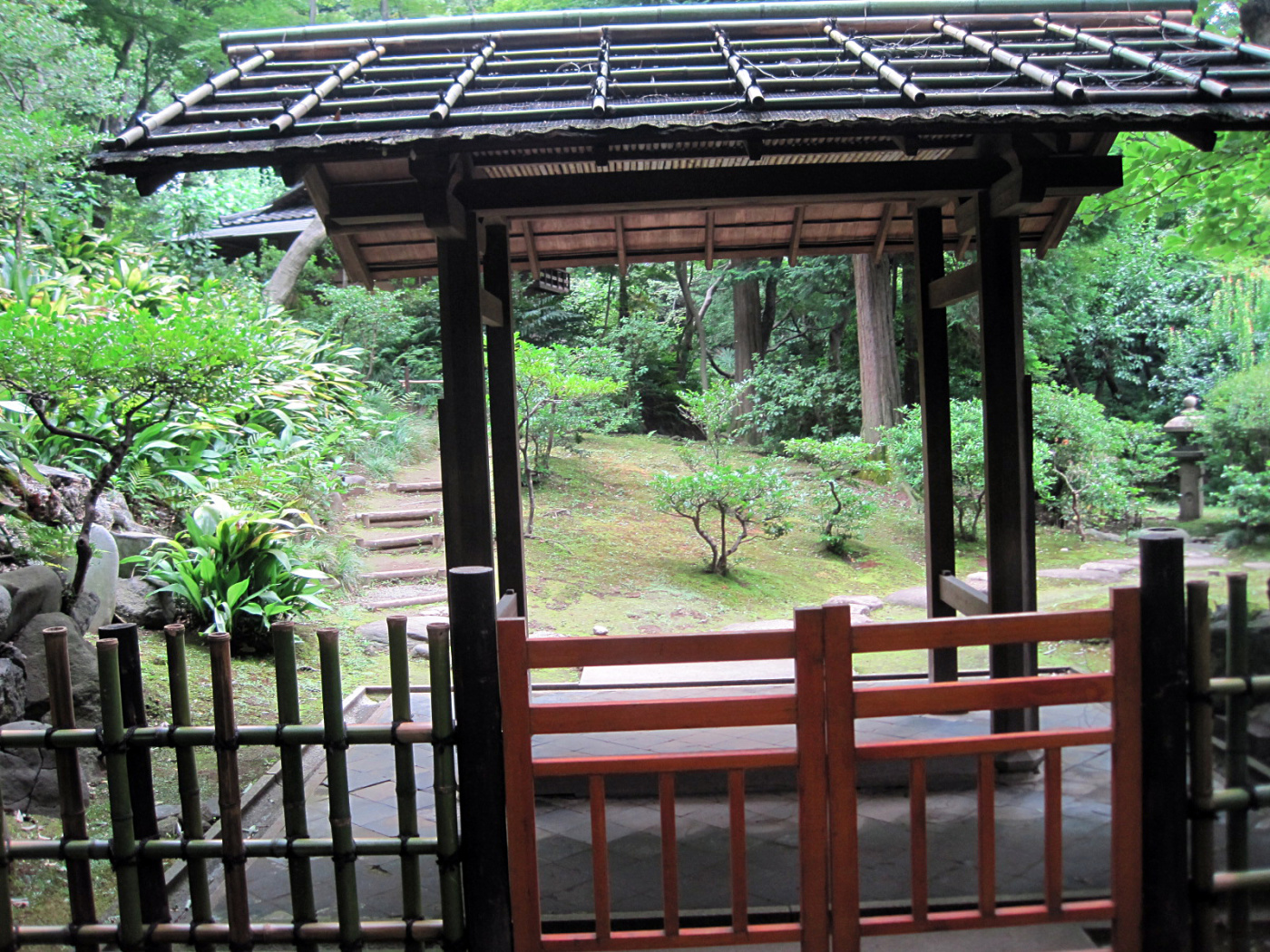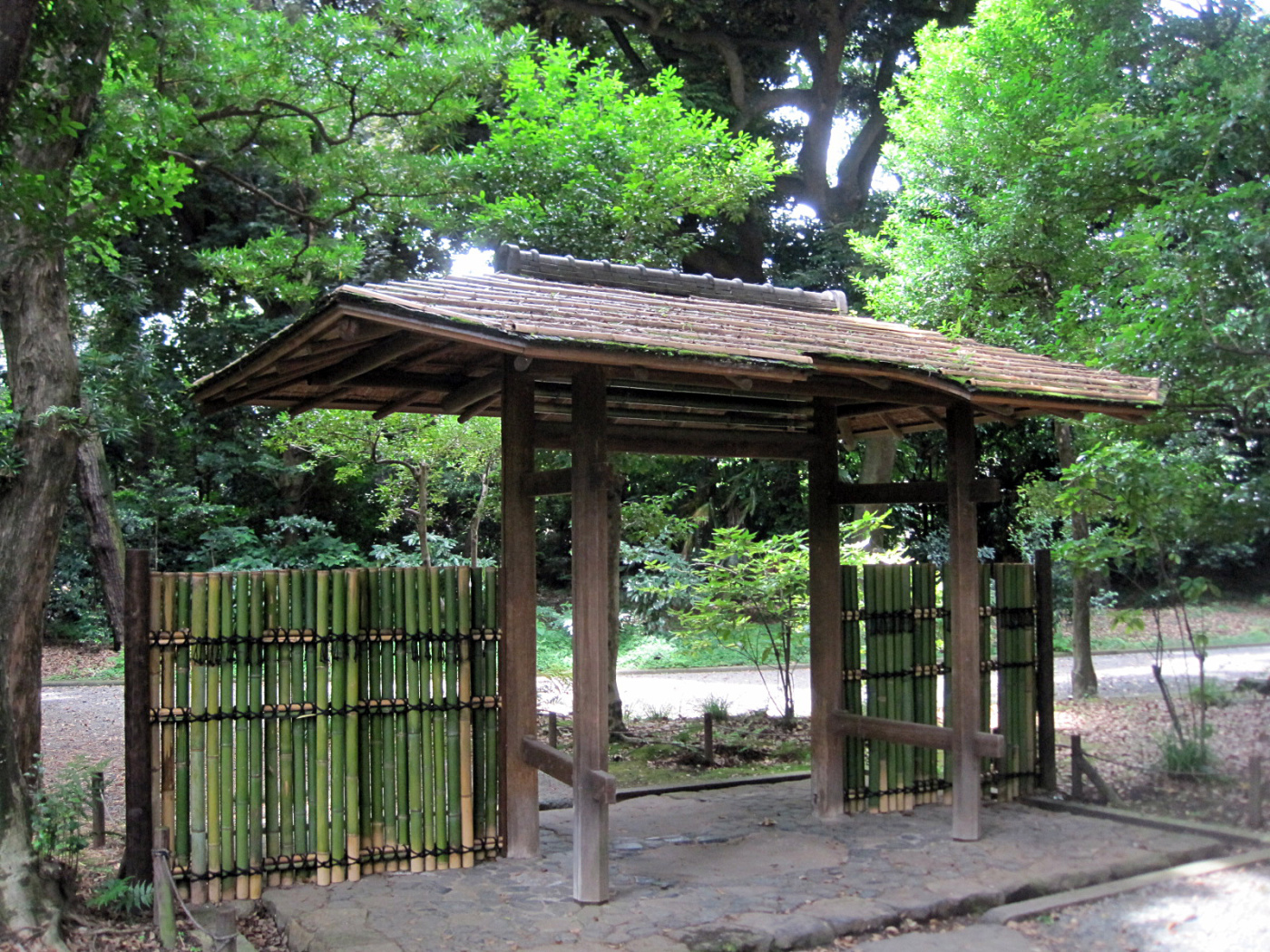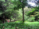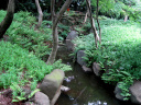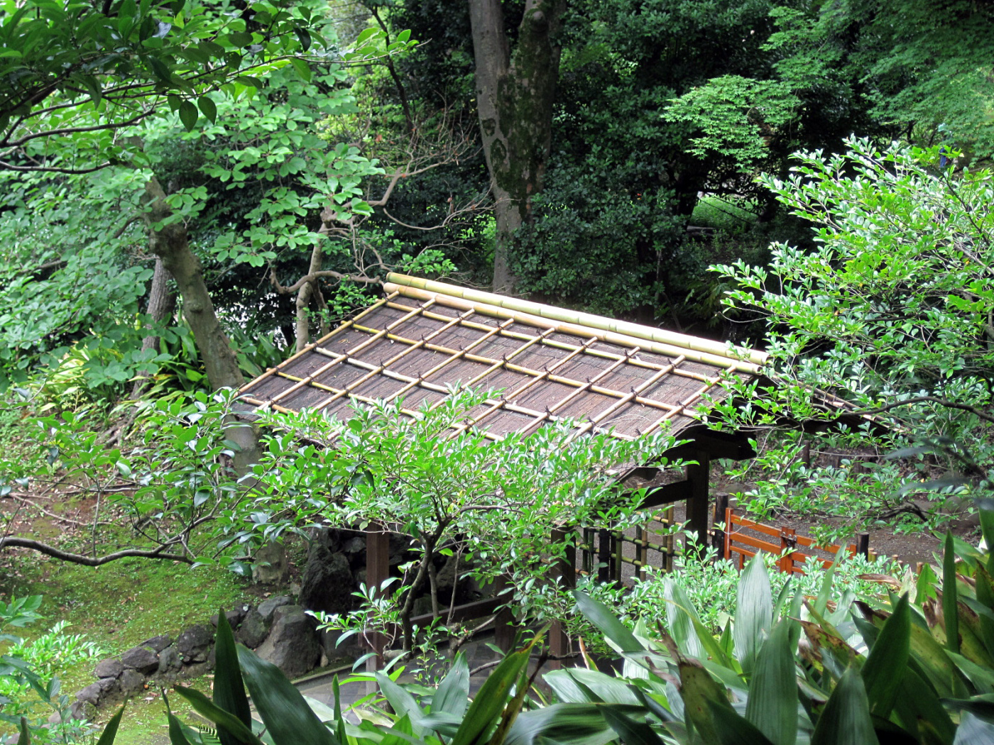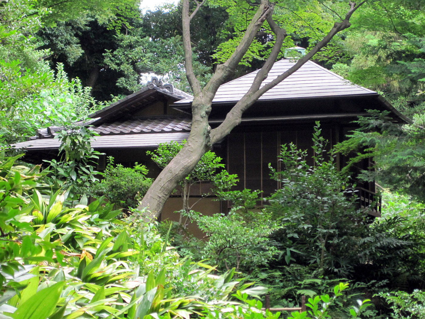 先ほどの滝から登ると,最初の建物とその横の広い芝生の処に出て・・・で,反対側を降りて行く途中には,茶室があります。