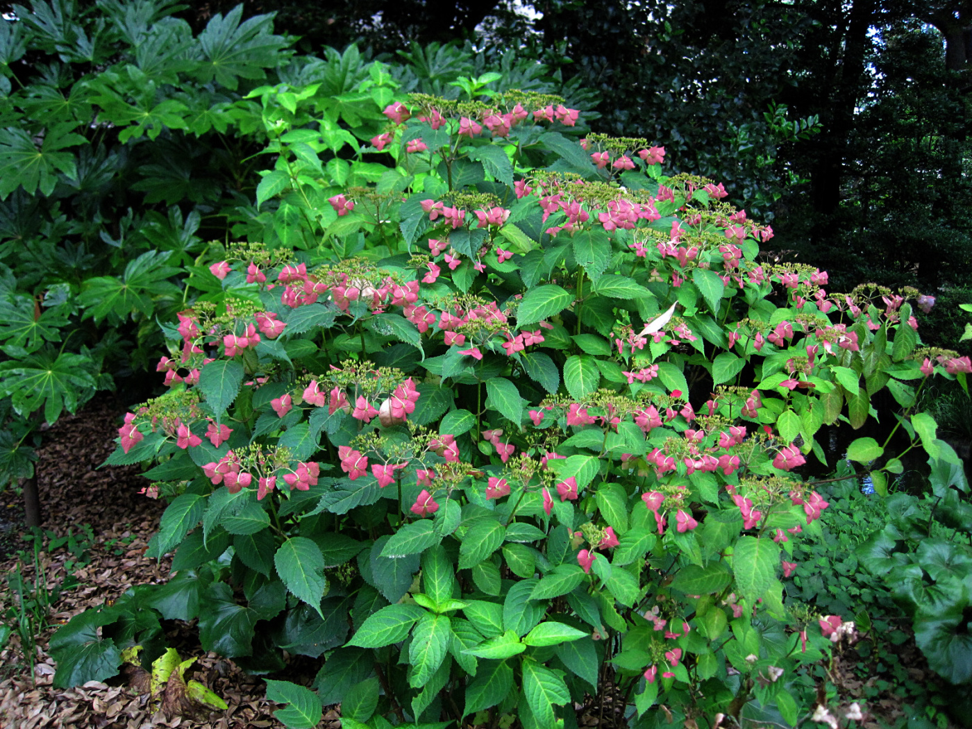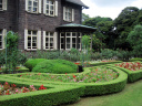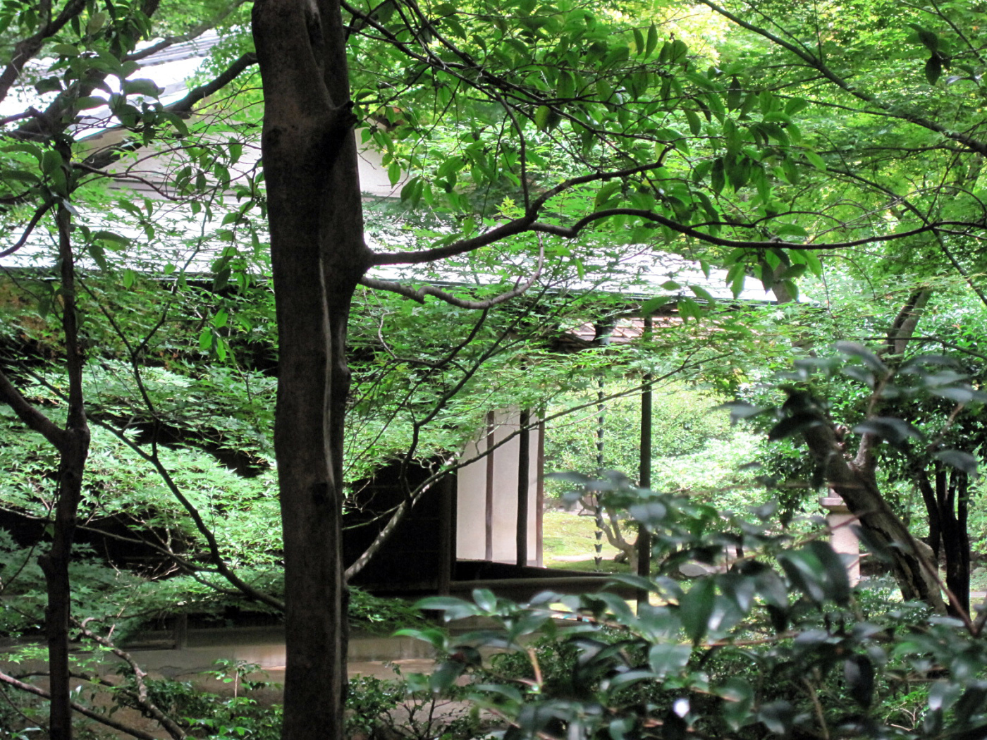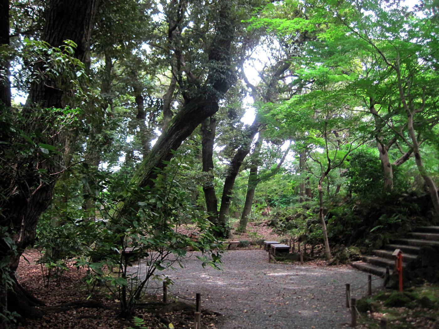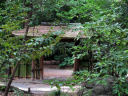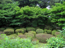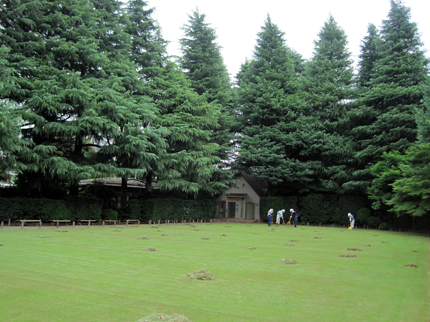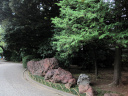 先ほどの滝から登ると,最初の建物とその横の広い芝生の処に出て・・・で,反対側を降りて行く途中には,茶室があります。