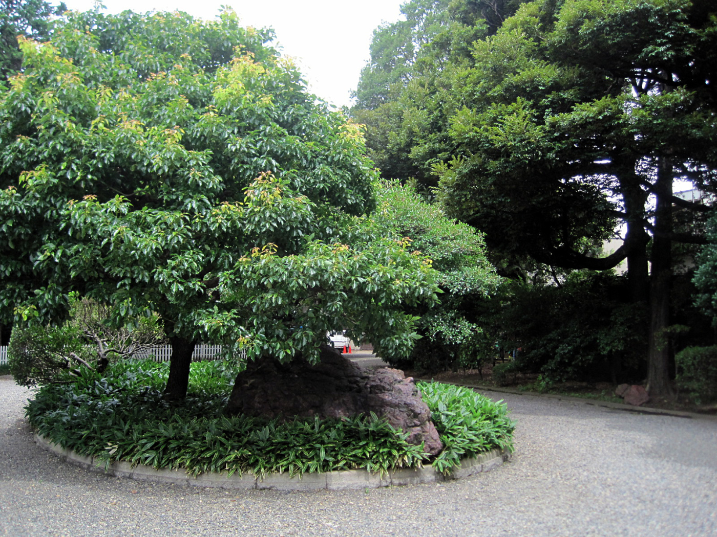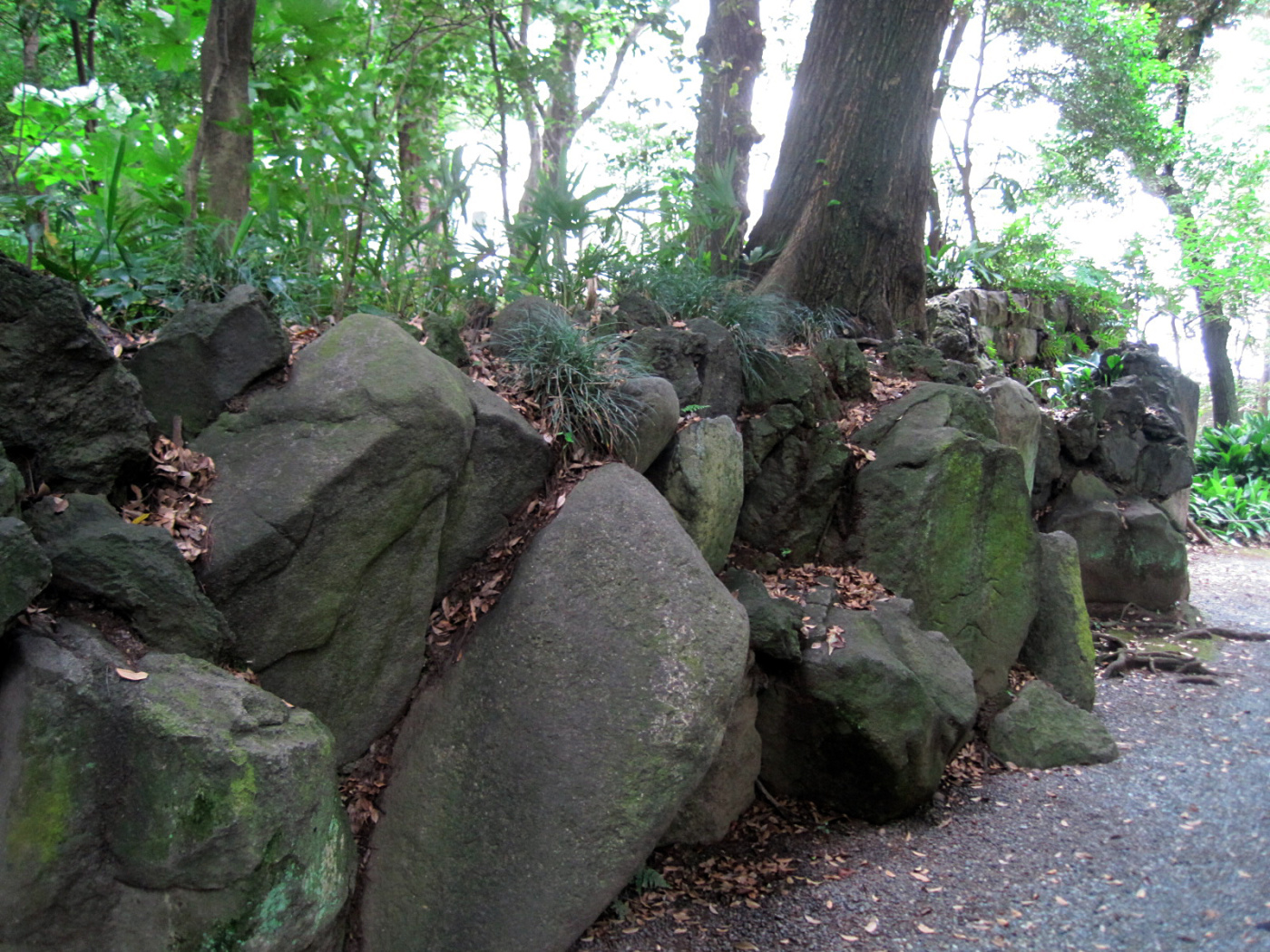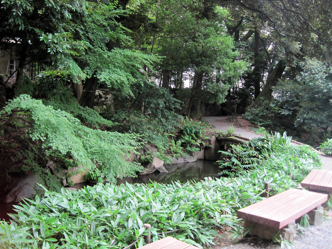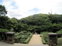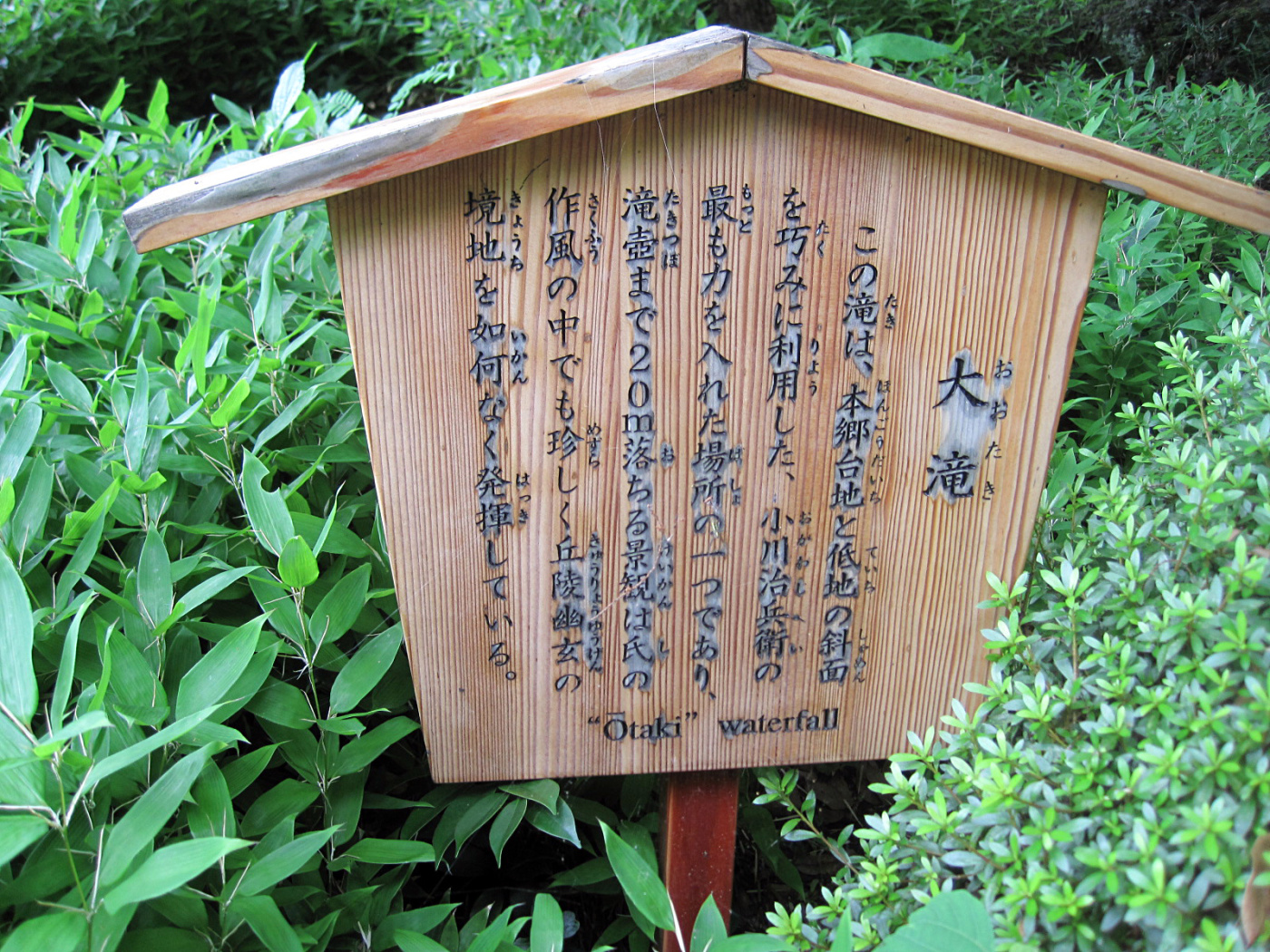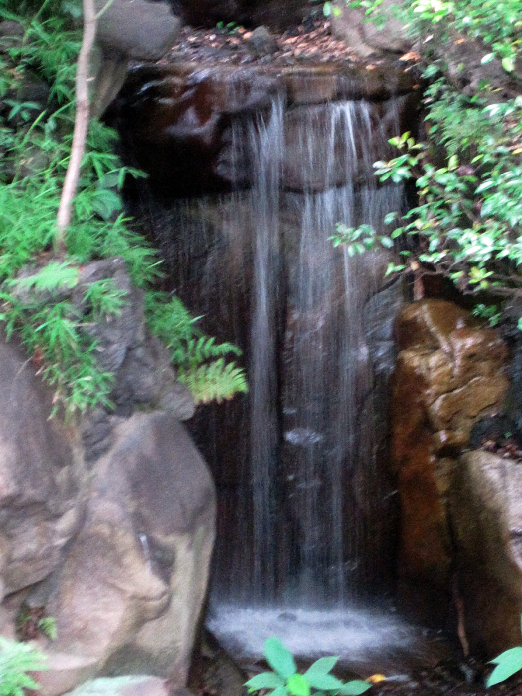 ちなみに日本庭園部分は【心字池を中心に、大滝、枯山水、茶室等を配する本格的な回遊式庭園である。台地斜面上の大滝付近の植え込みが深山の趣を醸し出しており、庭園の構成に深みを与えている。】ということで,元々の地形を利用しています。