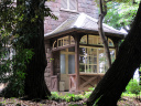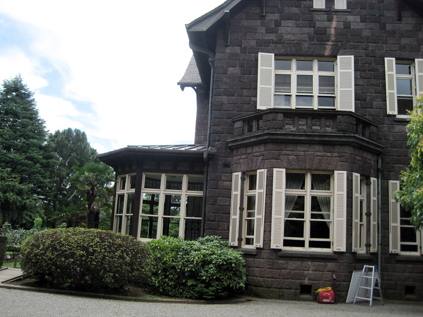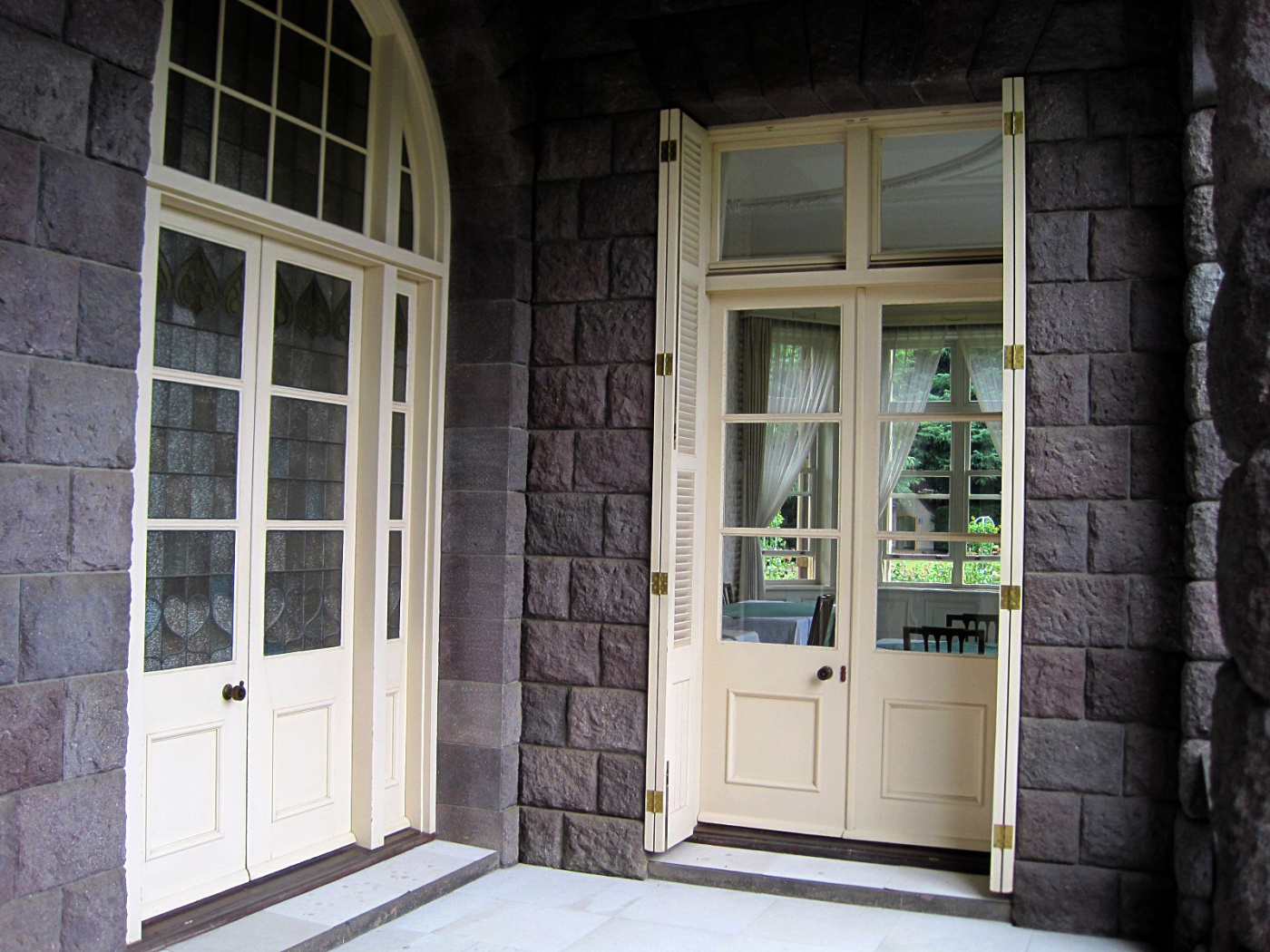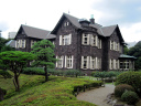 【1917年(大正6年)5月竣工。外観はルネサンス調。煉瓦造の躯体を、新小松石の野面石積みで覆っている。1階は食堂、ビリヤード室、喫煙室などの接客空間である。2階は家族の居室など私的空間で、和室も設けられている。現在は財団法人大谷美術館が洋館の管理を行っている。洋館1階は喫茶室になっており、テラス越しにバラ園・日本庭園を望むことができる。洋館内を見学することも可能だが、希望日の10日前までに往復葉書での事前予約が必要なので注意。なお、結婚式場として洋館を貸し切ることも可能である。】とのことです。