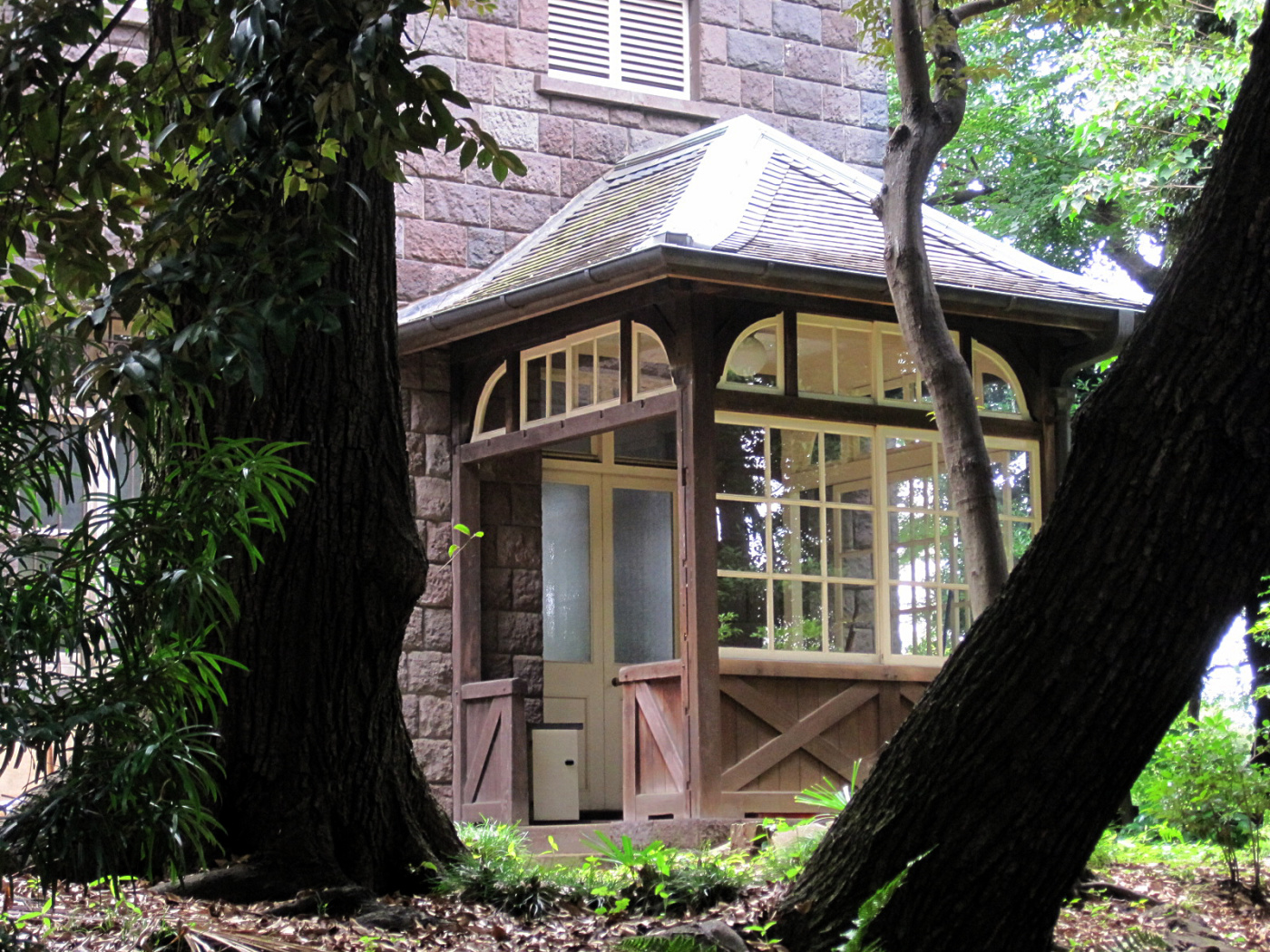 茶室の裏側の方に登っていくと・・・煉瓦作りの倉庫もありました・・・たぶん,倉庫だと思うのですが・・。