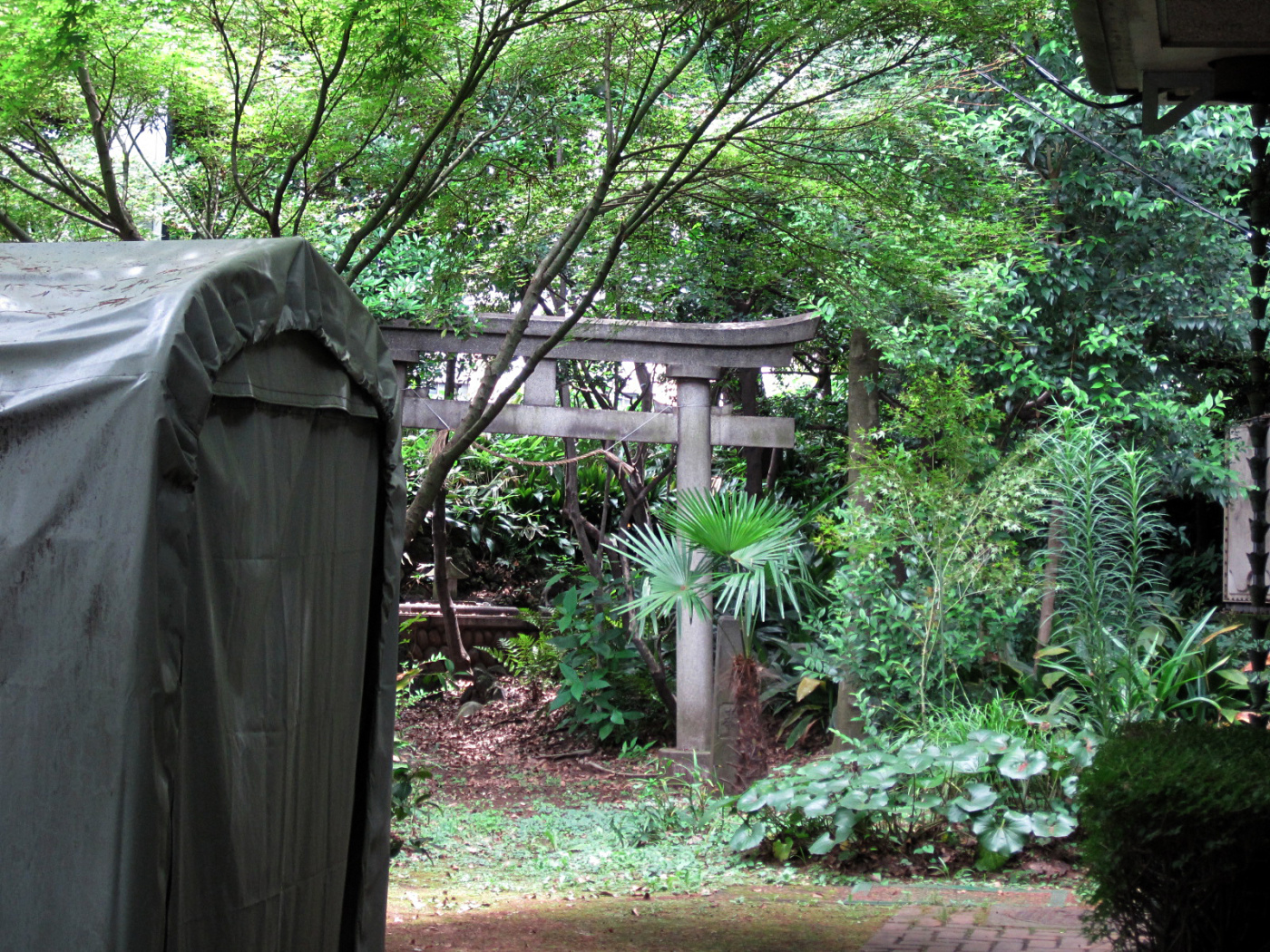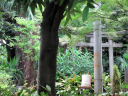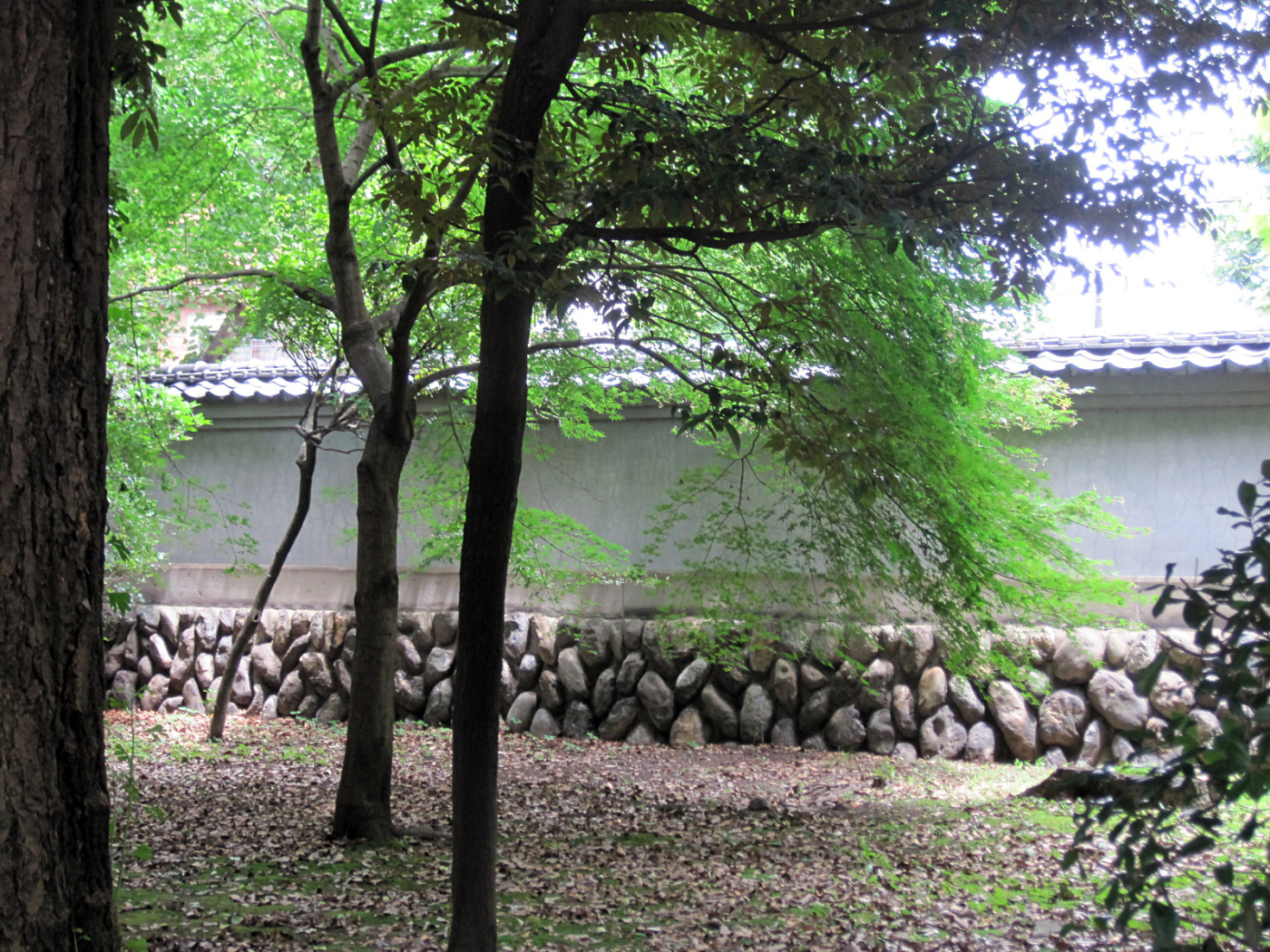 でも,外塀は・・・白壁! 奥に神社の鳥居も・・・そこには入れませんでしたけれど・・。