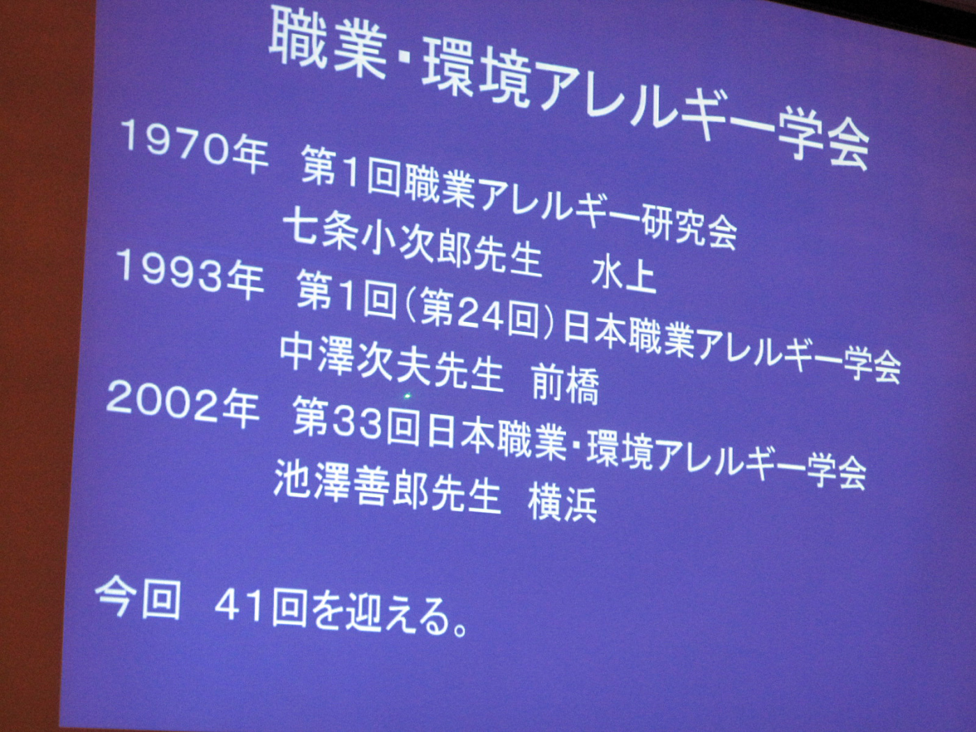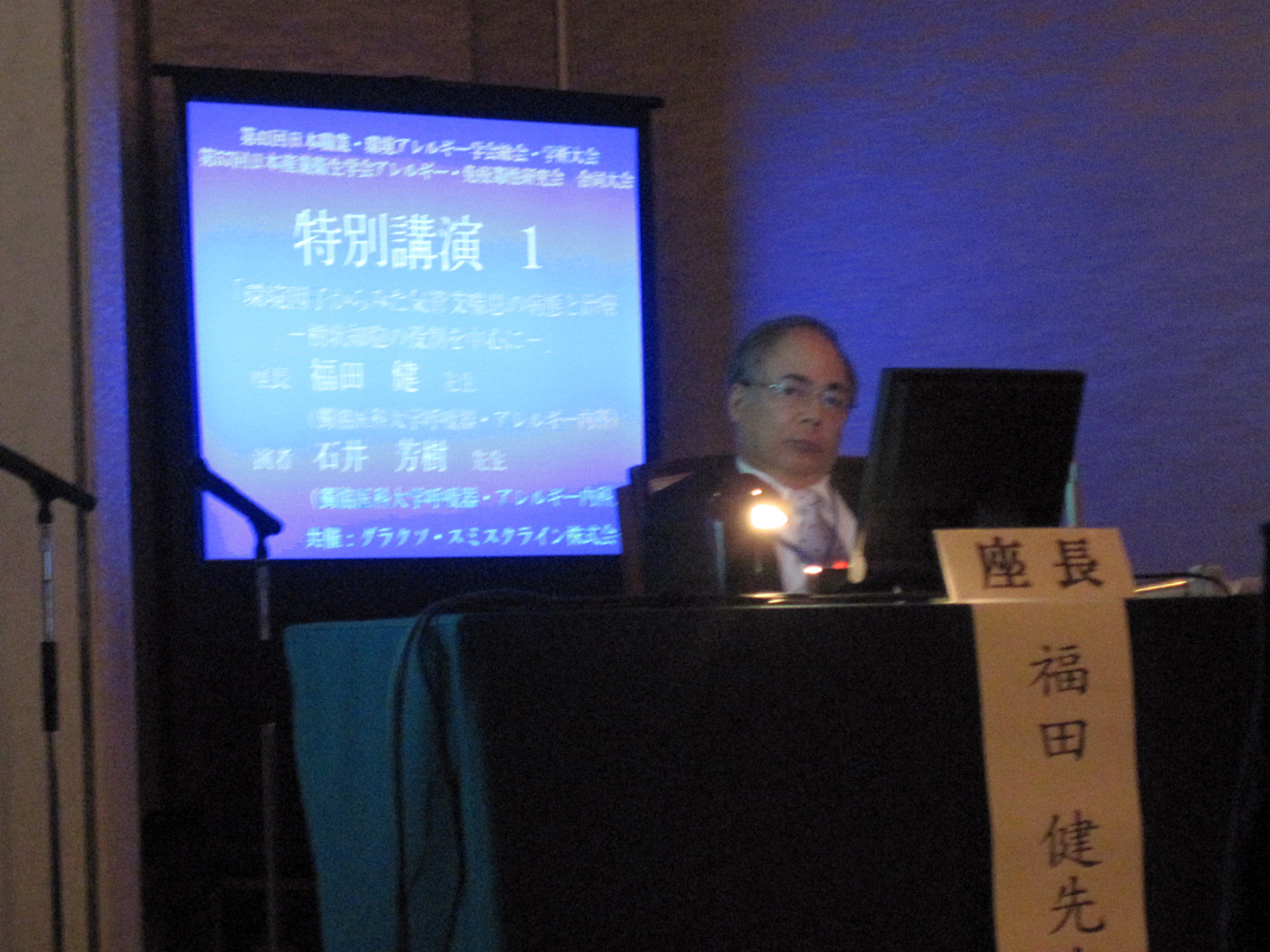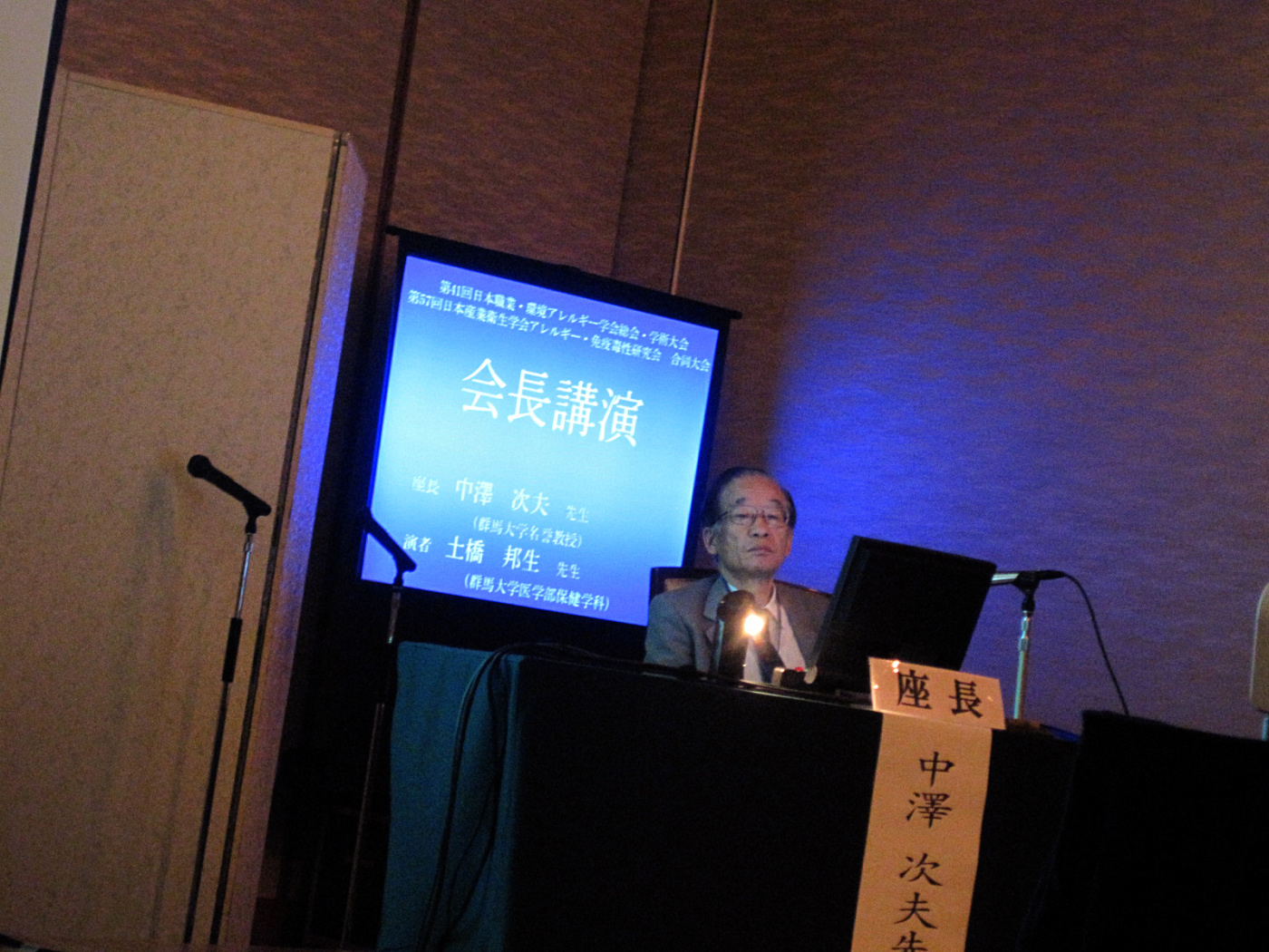 開会のご挨拶の後,会長講演でした。座長は日本職業・環境アレルギー学会理事長の中澤先生でした。