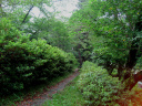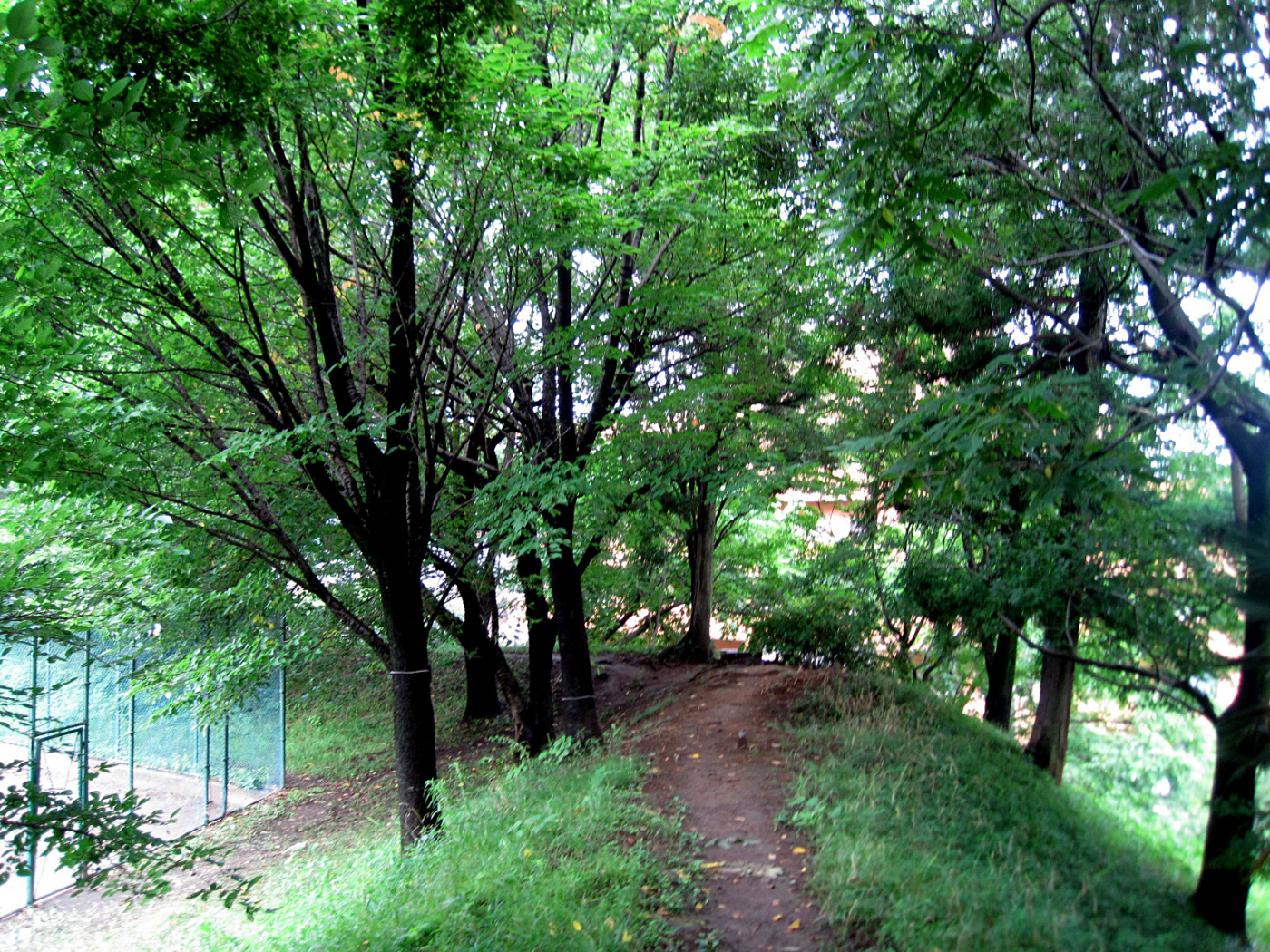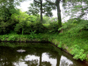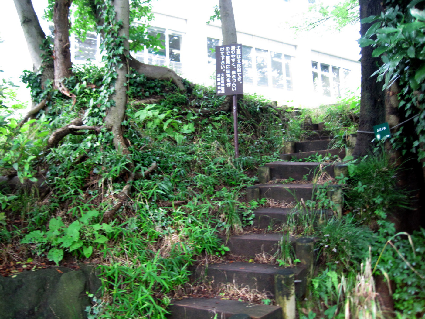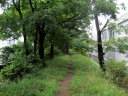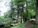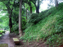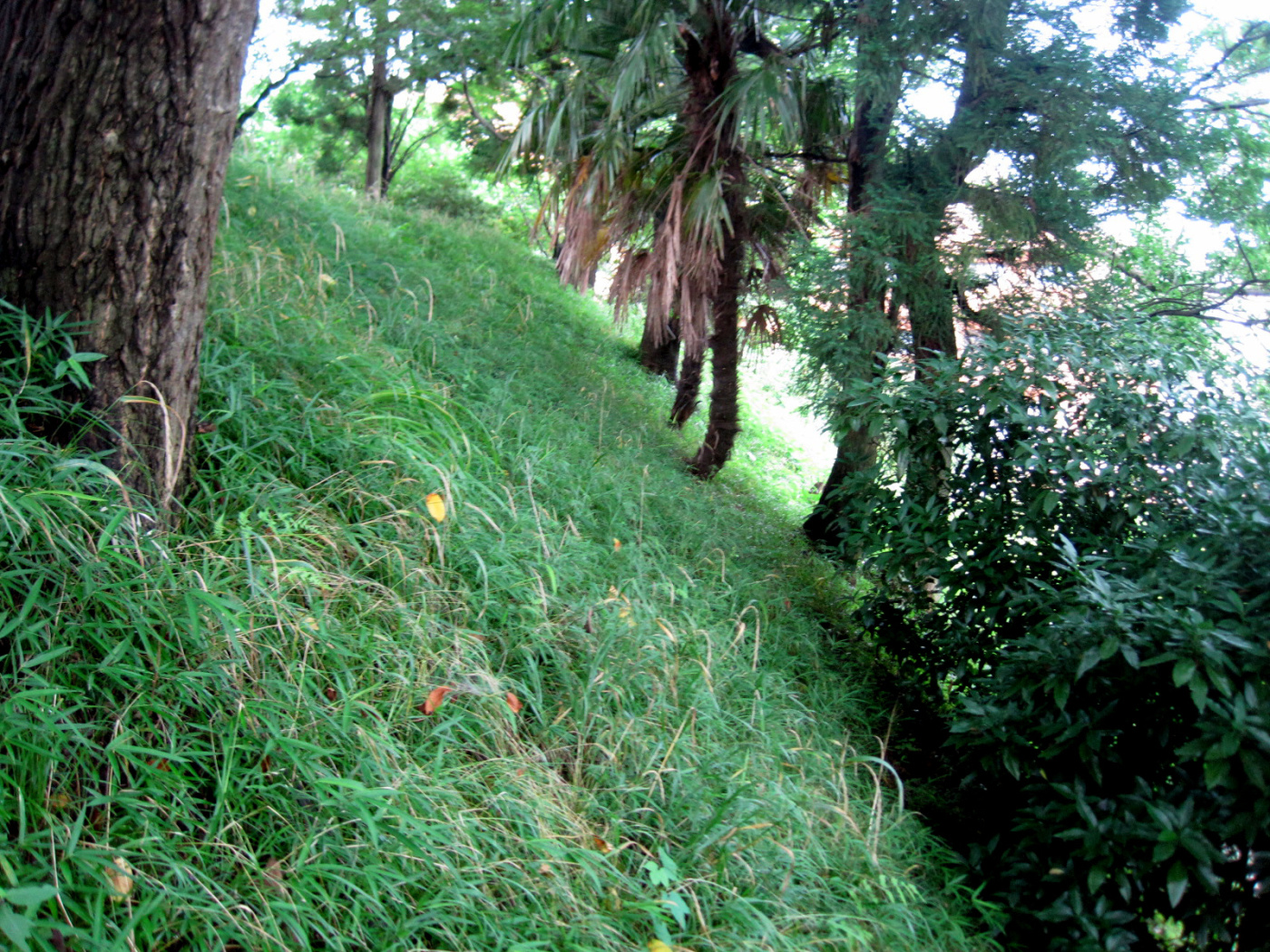 土塁の上に,細い遊歩道です・・でも,革靴では本当に滑りそう!