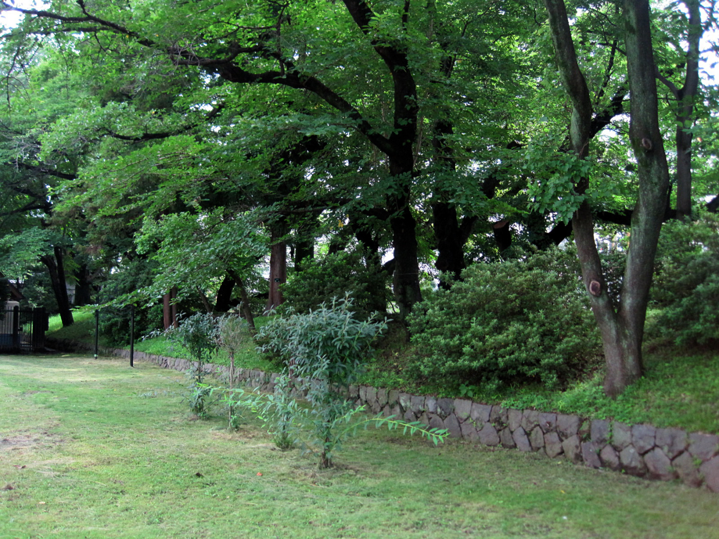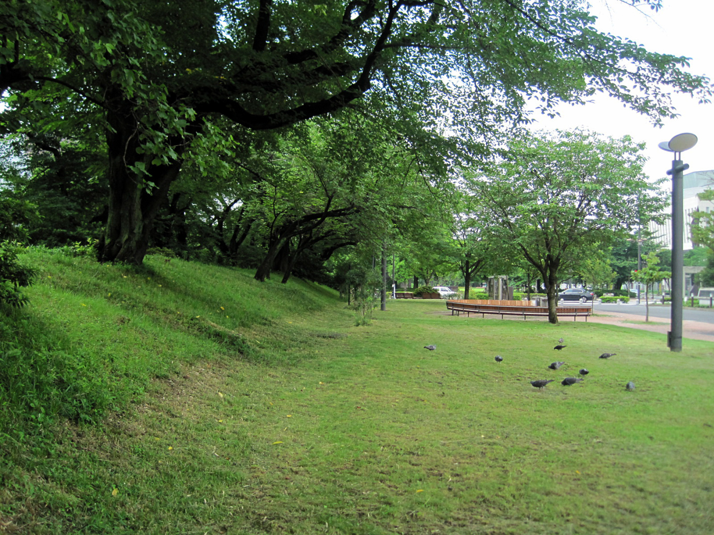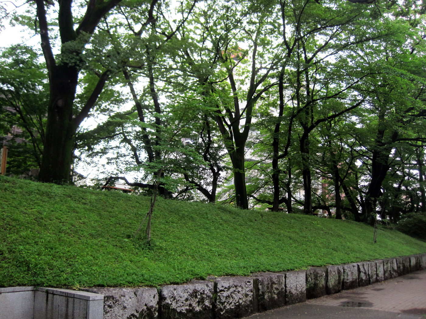 これらの芝生などの奥が小高く土塁になっていて,そこにも細道があるという形で,旧高崎城址の周囲がぐるりと囲まれているって感じですね。