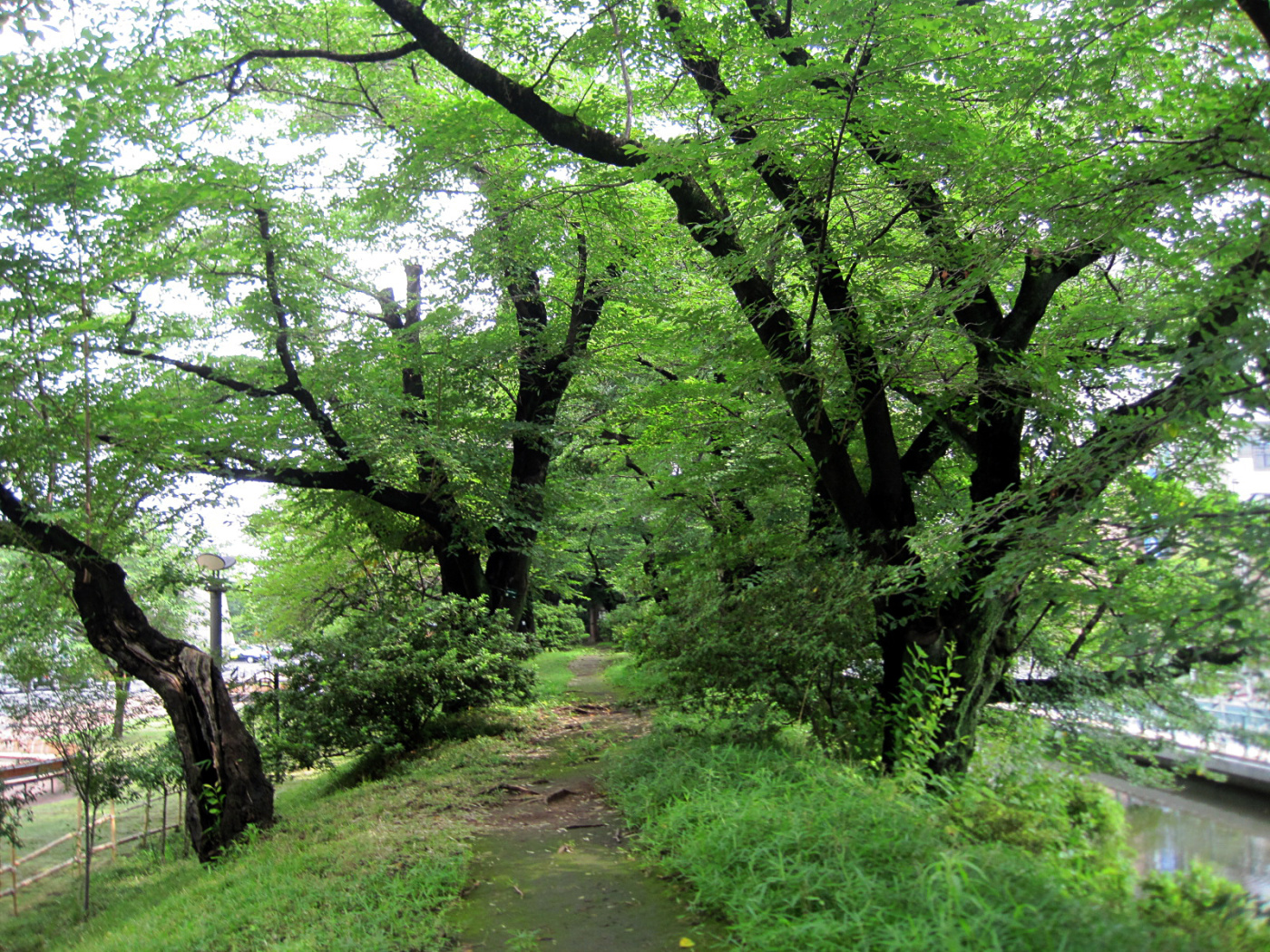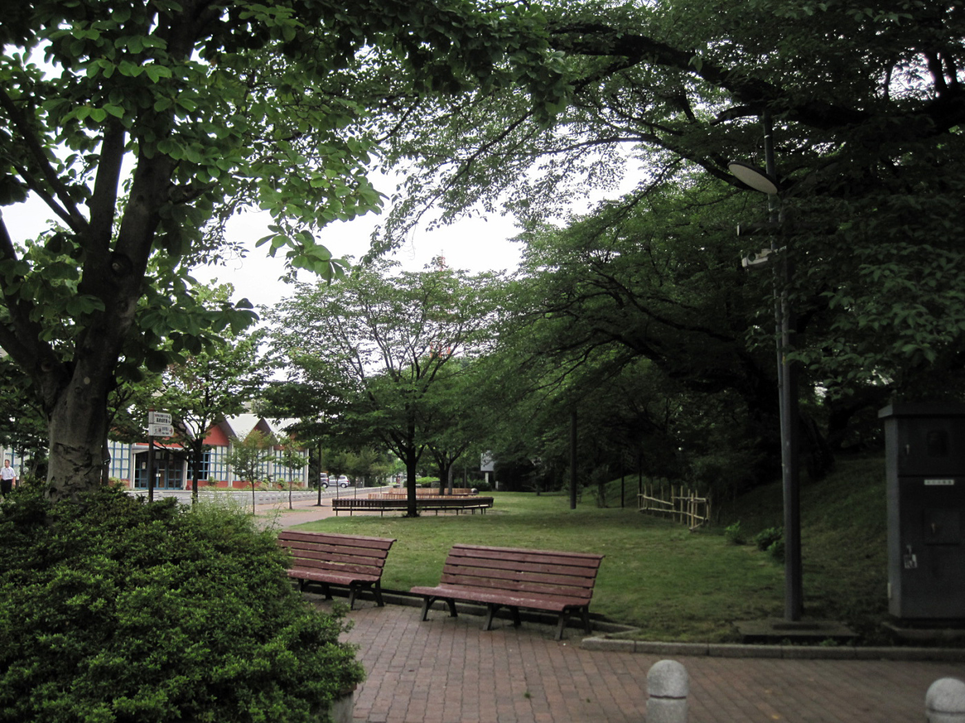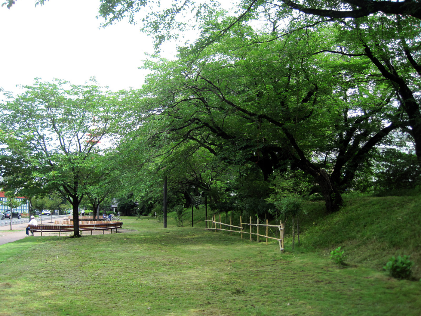 これらの芝生などの奥が小高く土塁になっていて,そこにも細道があるという形で,旧高崎城址の周囲がぐるりと囲まれているって感じですね。