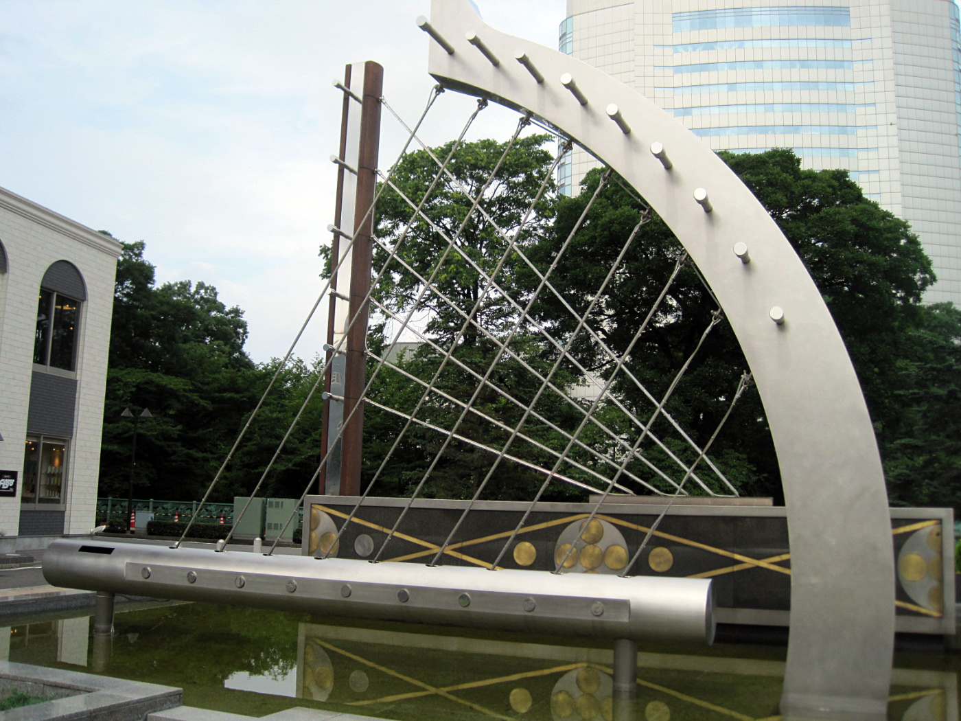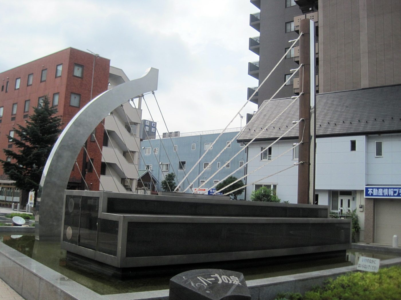 【「ハープの泉」は、JR高崎駅西口と市庁舎を結ぶシンフォニーロード沿いにある広場に設置されたもので、商業・業務集積地と官公庁・文化施設が集中する地区の接点となる、シンボル性の高い都市空間の創出をめざして整備が進められた。