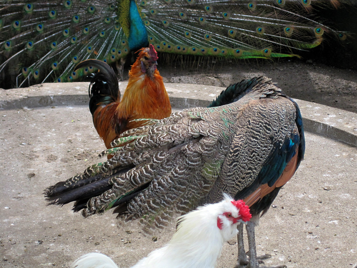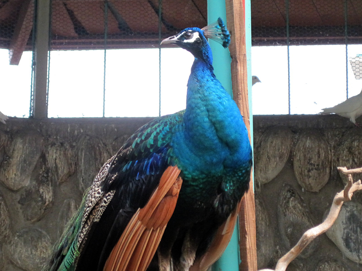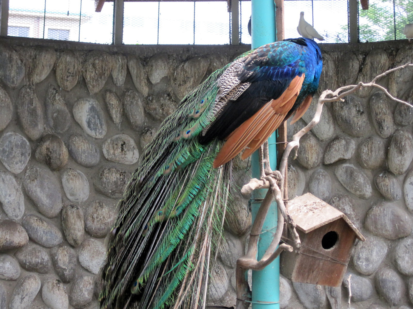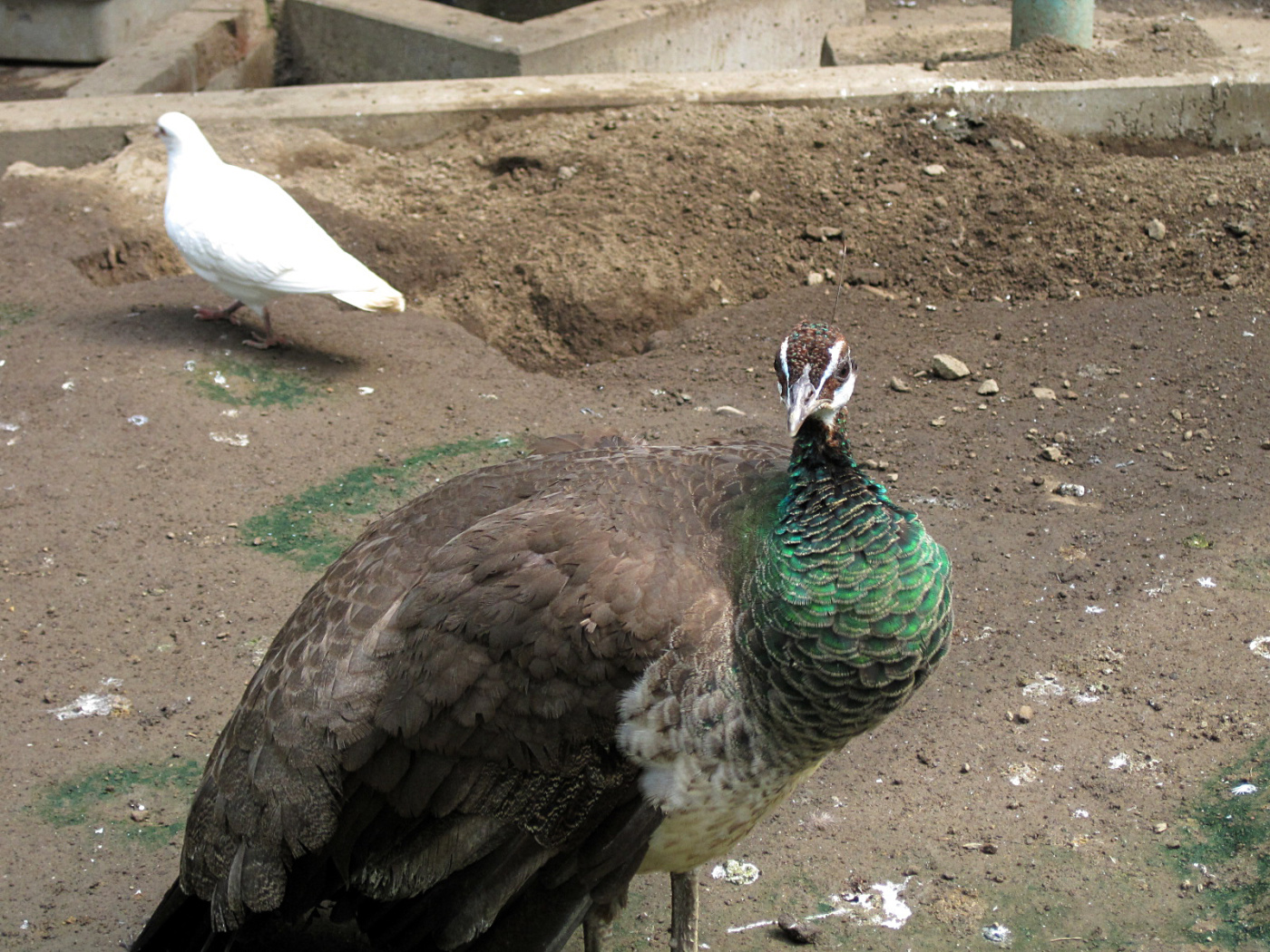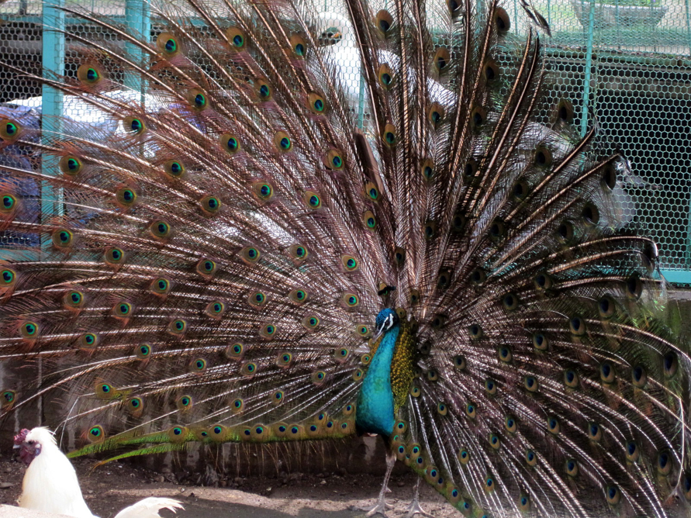 さて・・・・鳥小屋があって。。。ミニ動物園みたいな感じですが,孔雀です! なんだか,とっても感動です。