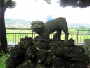 狛犬は四足で立っていて,今にも動き出しそうdす。