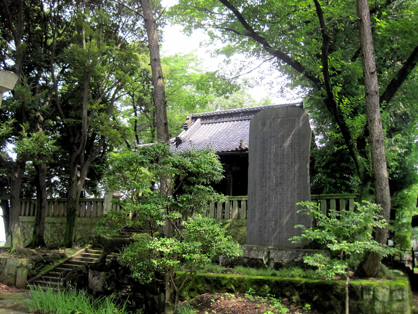 実は茨城県にもありまして・・・【頼政神社(よりまさじんじゃ)は、茨城県古河市錦町(観音寺町)にある神社である。もとは古河城南端の立崎曲輪(頼政曲輪とも言う)にあったが、 渡良瀬川の河川改修工事のため、大正元年(1912年)に古河城北端の現在地に移転された。神社としての創建については、延宝5年(1677年)に、古河城主の土井利益が城内鎮護の神としたことを起源とする解説がある。しかし、もう一方では、元禄9年(1696年)に、城主の松平(大河内)信輝が城内に先祖頼政が祀られていることを知り、神社として整備したことを起源とする解説もある。このとき、信輝の弟輝貞は、大灯籠を寄進するとともに、居城の高崎城内にも頼政社を勧請した。また、信輝の長男信祝が三河国吉田藩(愛知県豊橋市)へ国替えとなった時、勧請して豊城(とよき)神社を建立した。】だそうです。一族の関連ですね。