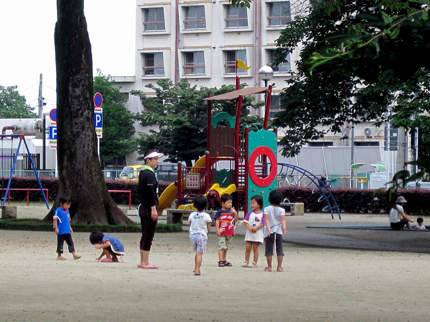 さて,そろそろ学会に向けて,来た道を戻りましょう!公園には,保育園の園児たちでしょうか・・・少し空も青空が見えてきて,遊びに来ているようでした。