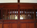 待合室から観た,玄関裏に,からくり時計・・・子供たちが熱心に見ていました。