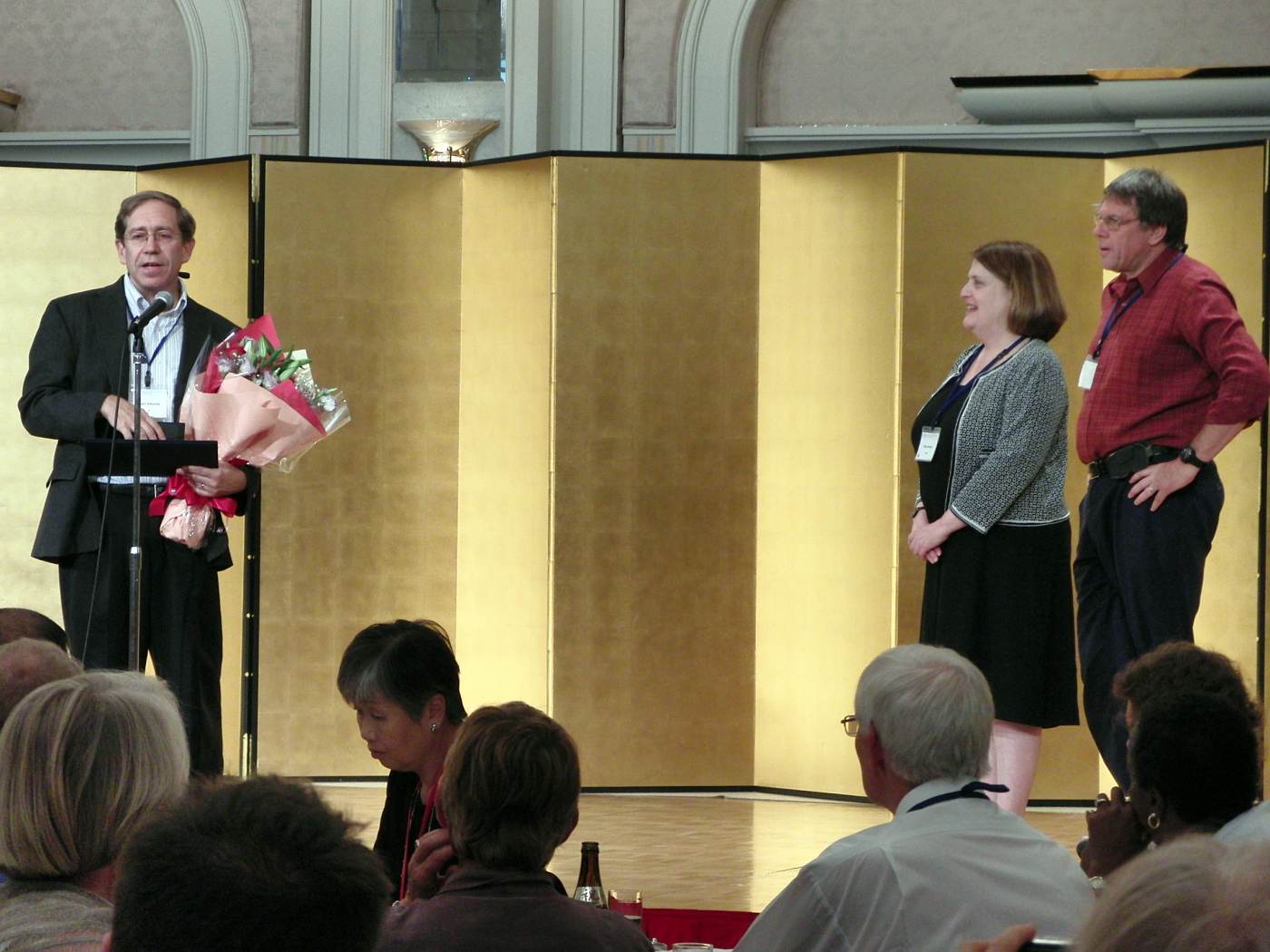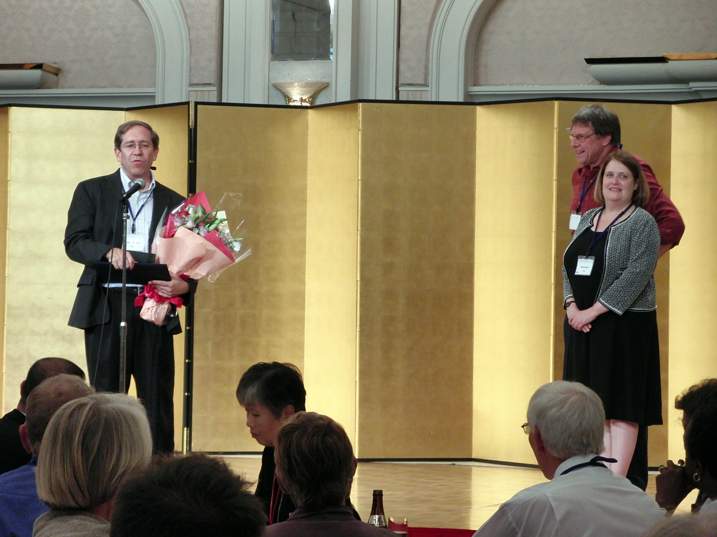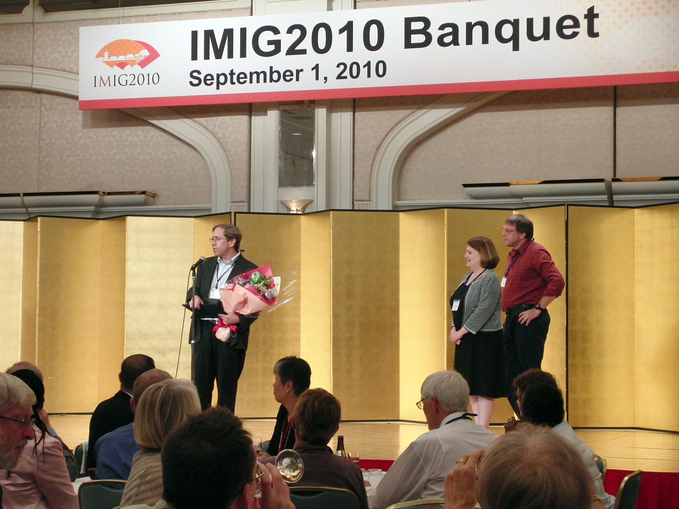 | 2010.8.31-9.2. 京都でThe 10th Meeting of International Mesothelioma Interest Group でした。 大槻は9/01に座長の時間だけ滞在に近い状態で,その様子は別に掲載しています。 西村先生と熊谷先生が参加して,しっかり勉強してきました。 前田先生と大槻のポスター発表も併せてして下さいました。感謝! 様子です。 僕らのポスターセッションは,川崎医大からの4題と徳島からの1題で,教室内data clubみたいだったのかも? ほら,大槻はちゃんと座長はしましたよ! 岸本先生(岡山労災)や関戸先生(愛がセ)も座長をされていますし,平野先生もご発表です。 中野教授(兵庫医大)は科学技術振興調整費でもお世話になっておりますが,やはり,日本で初めてこのmeetingを主催されるってことで,力を入れて開催されたご様子で,その熱意がとっても伝わってきました。 素晴らしい会合をありがとうございました。 授賞式ですね。 沢山の研究者が集まっていました。 さて,懇親会の様子ですね! すごいです,舞妓はぁ〜ん,って感じ。そして和太鼓! 動画です。 その時々の様子です。 |