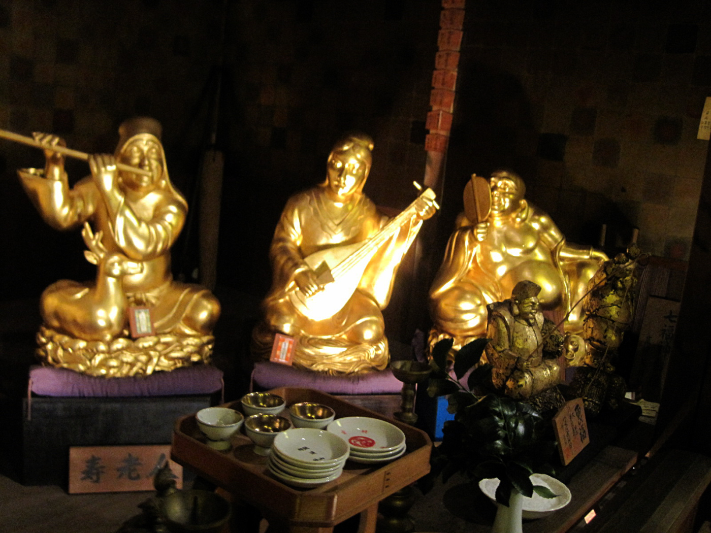 なんか,すごいお店です。玄関の待合所には,金の七福神も・・・。