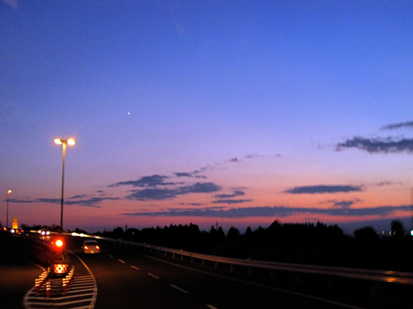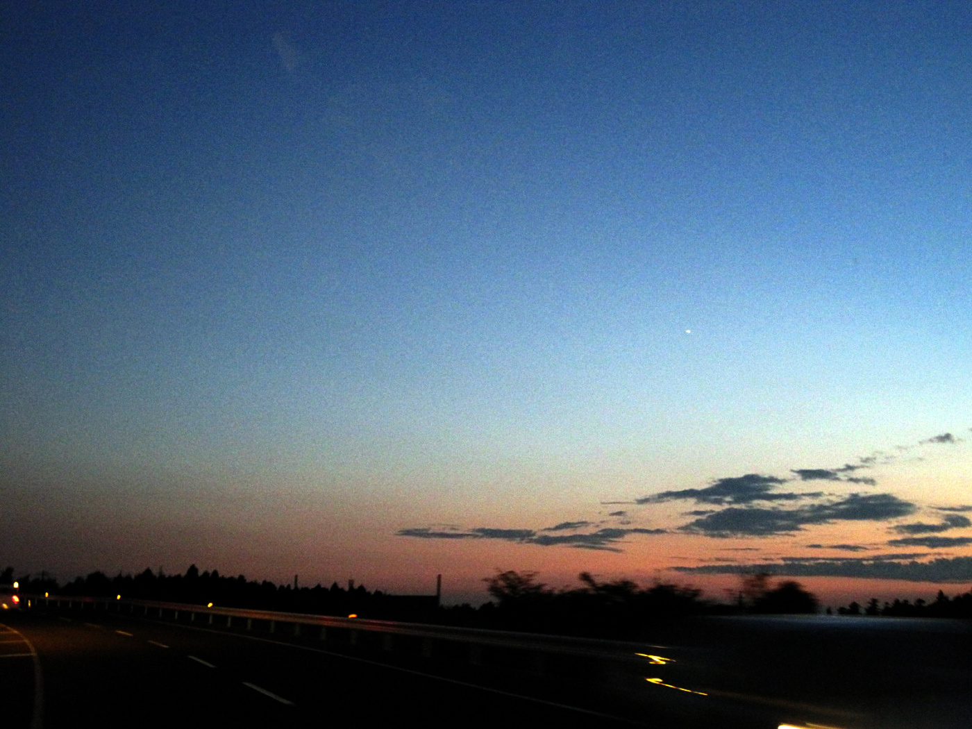 関東平野です。地平線が夕映えに素晴らしい色合を見せていました。
