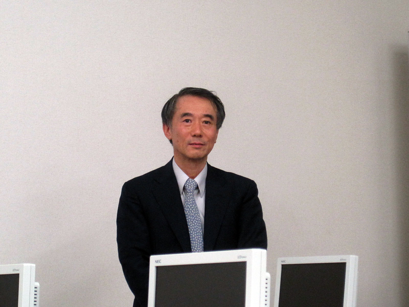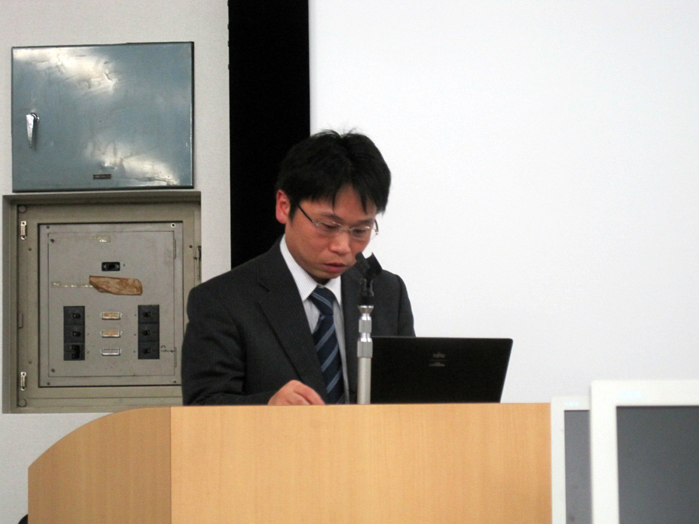 ↑ 開会挨拶の公文先生,座長の梶谷先生(川崎医療福祉大副学長),演者の荒木先生
