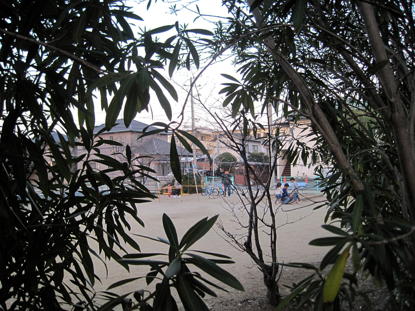 お隣は公園で夕暮れ時,お子様連れのお母さん達が沢山でした。