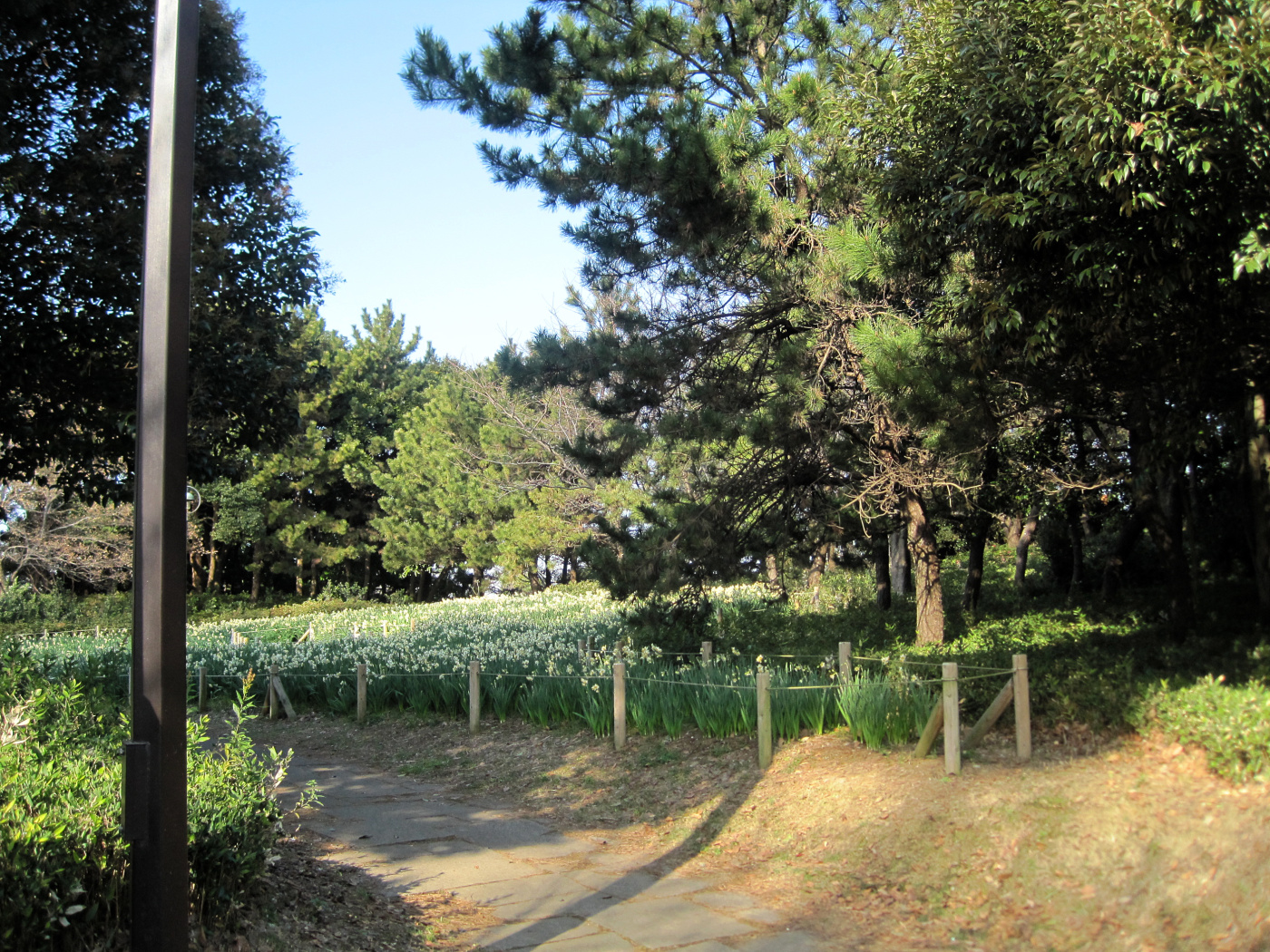 さて,紅梅から再び・・・水仙の方へ・・・観覧車は,どこからでも良く見えていますが・・・。
