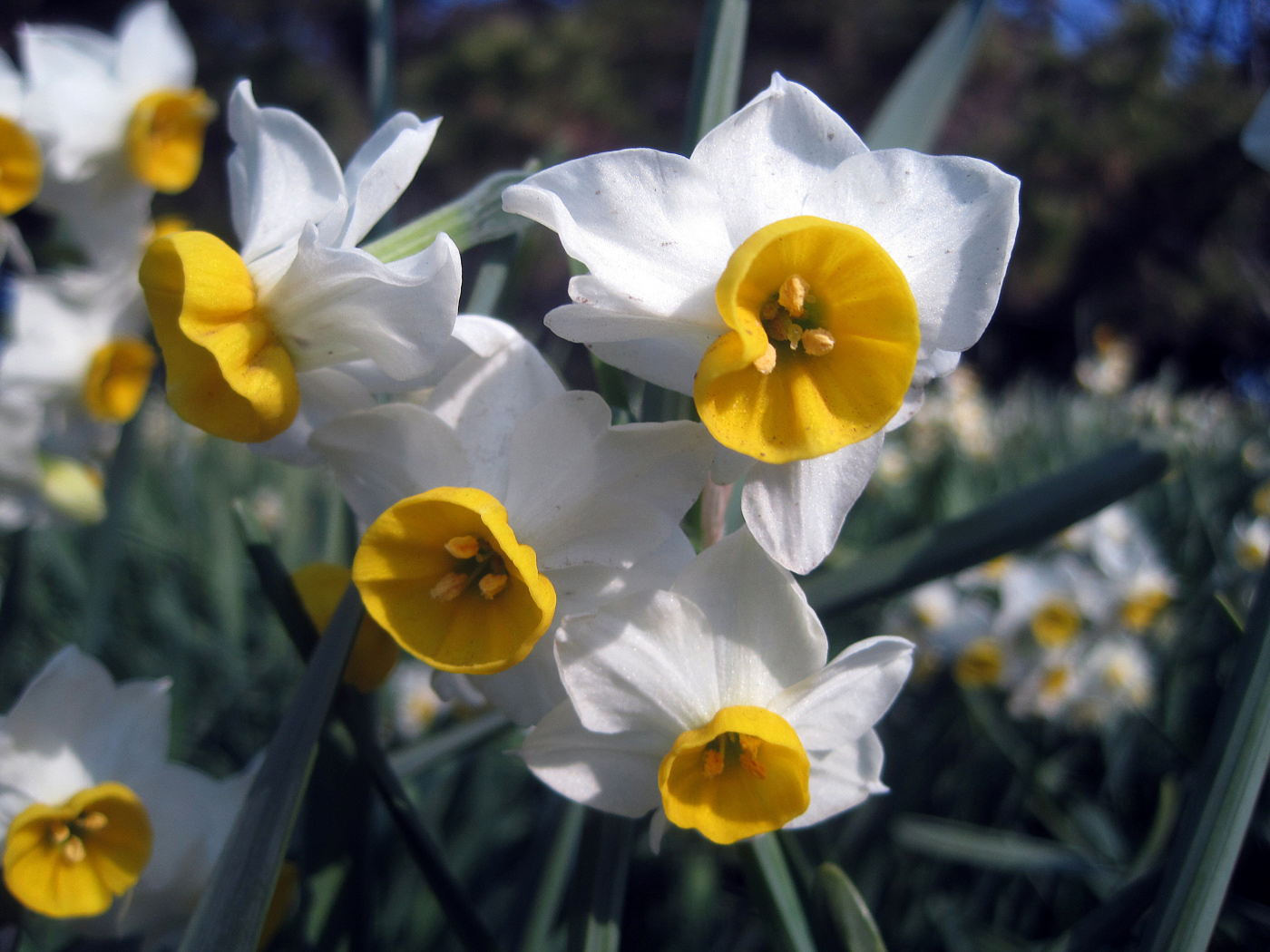 【花言葉は「うぬぼれ」「自己愛」「エゴイズム」,(日本水仙)「自己愛」,(白)「神秘」「尊重」,(黄)「私のもとへ帰って」「愛に応えて」,(ラッパズイセン)「尊敬」「心づかい」】だそうです。