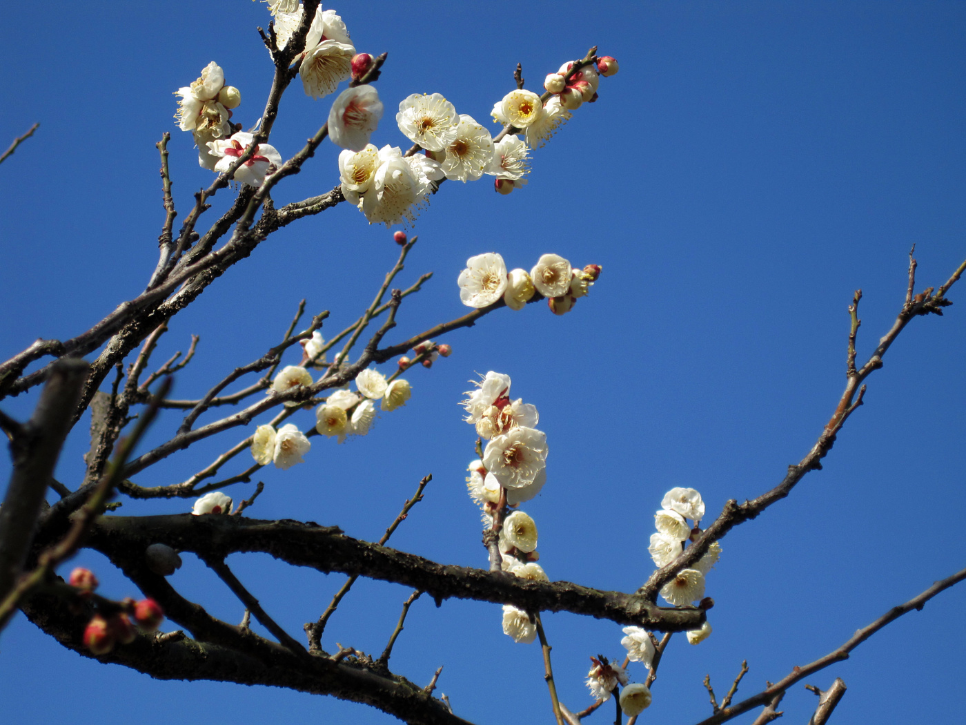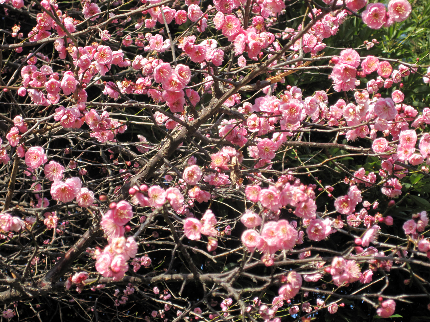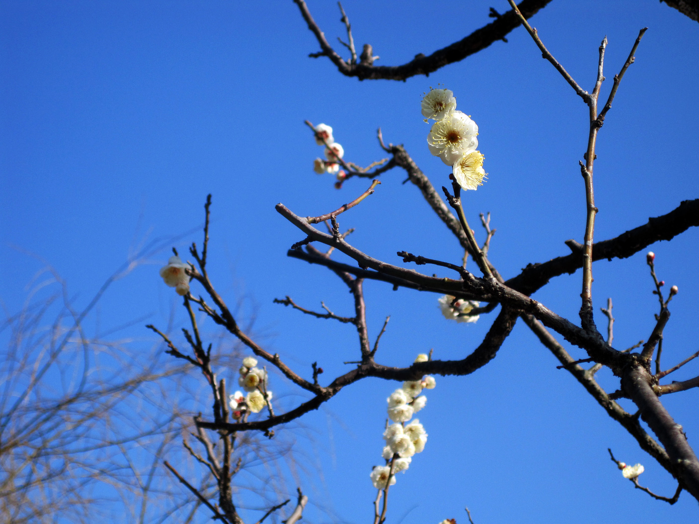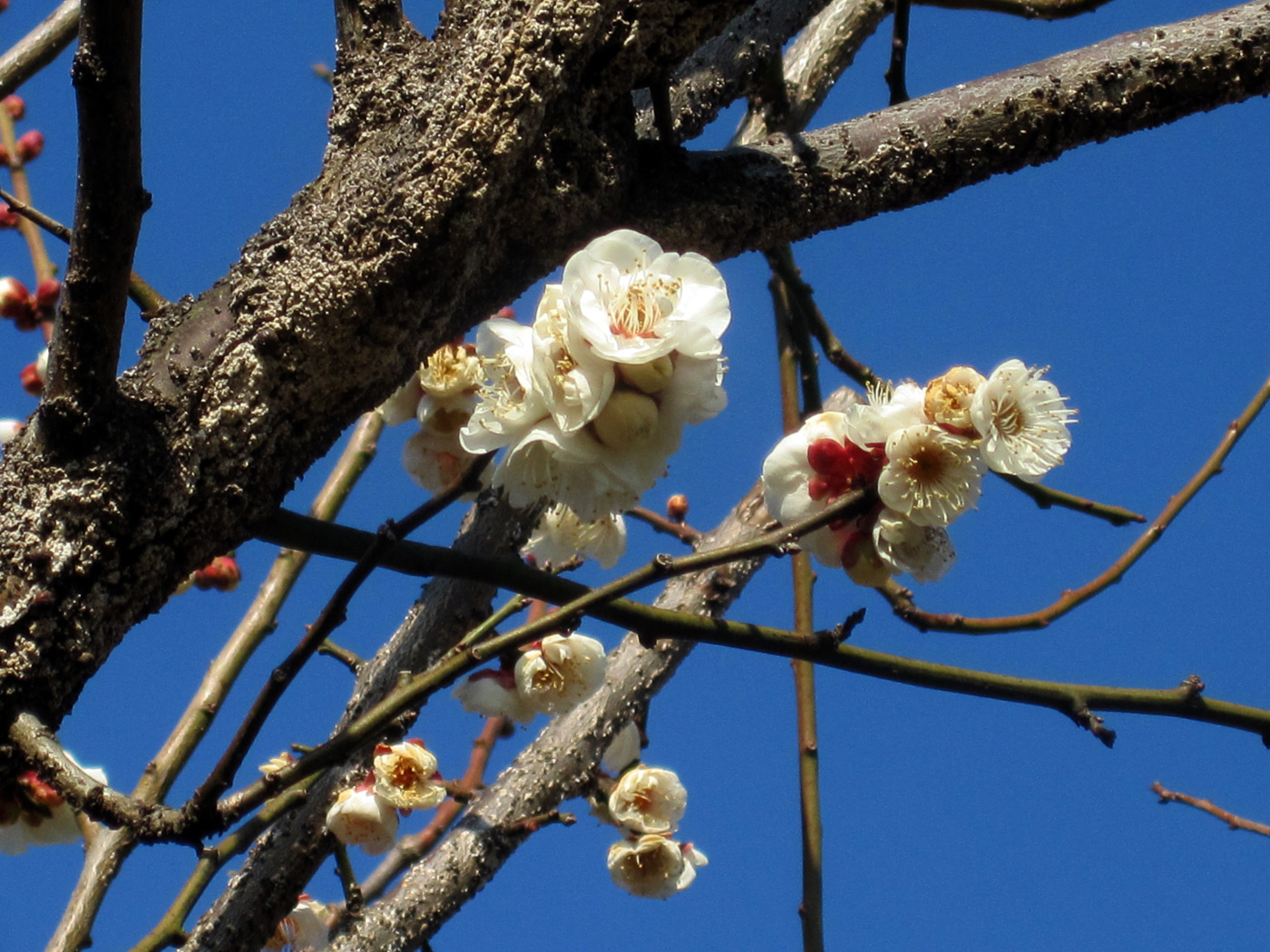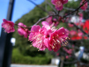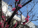 と,思っていたら,遠くに,薄紅に花を付けた木がありました。梅ですね,ちょっと早咲きではないですか?