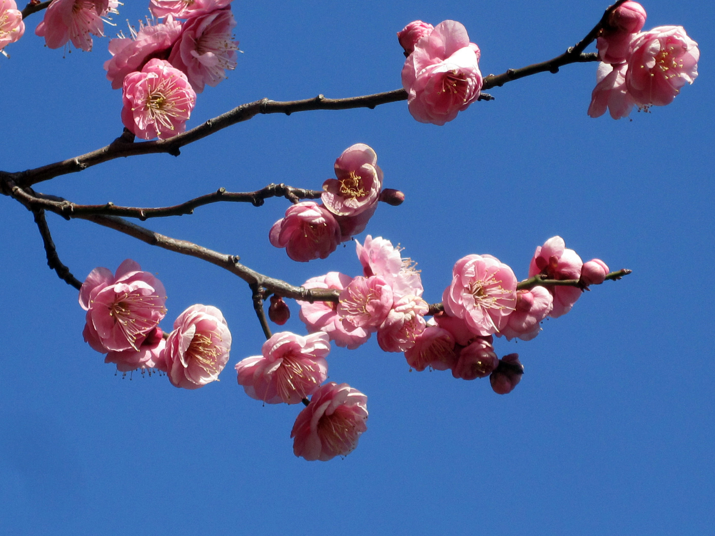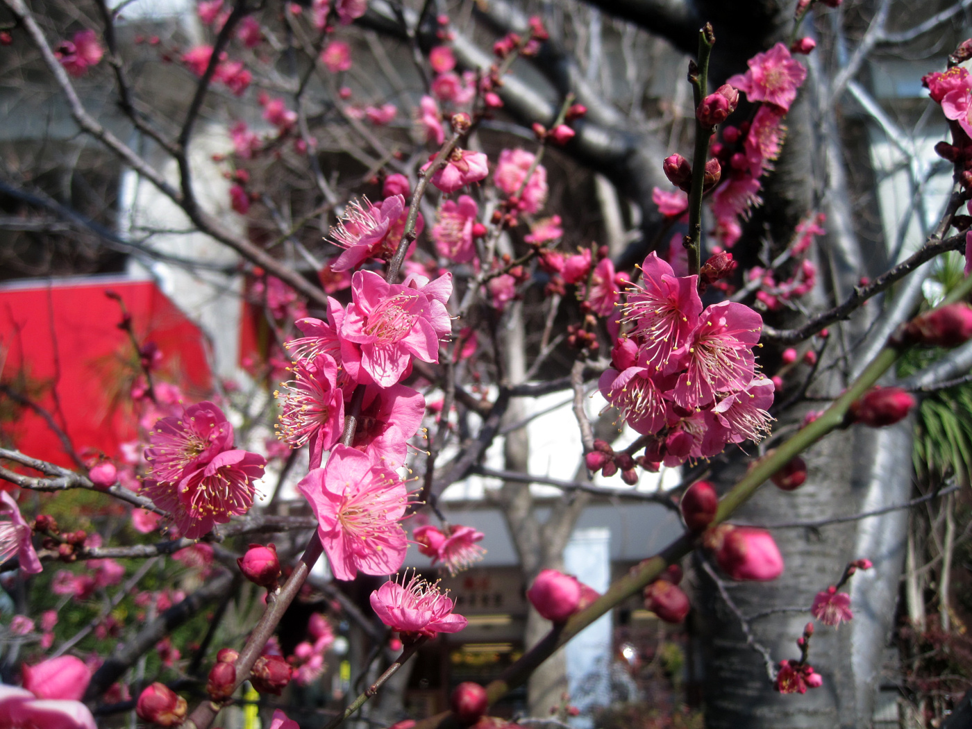 噴水もいいですし,マックの傍には,紅色の強い紅梅が・・・。