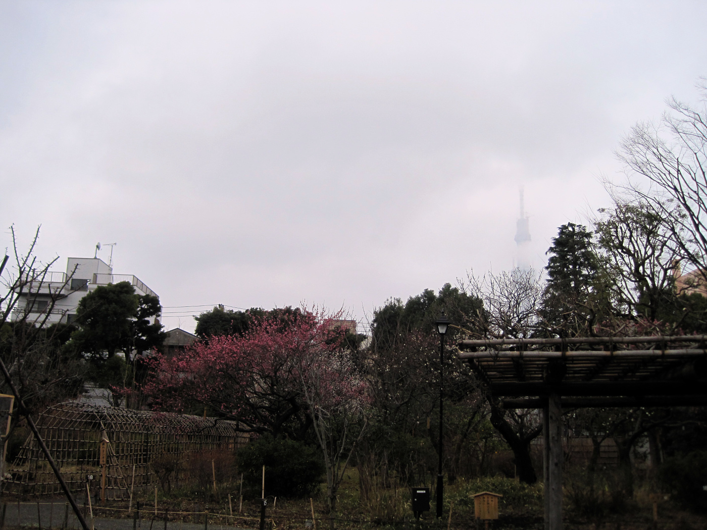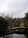 東京スカイツリーが木の間越しに見えています。