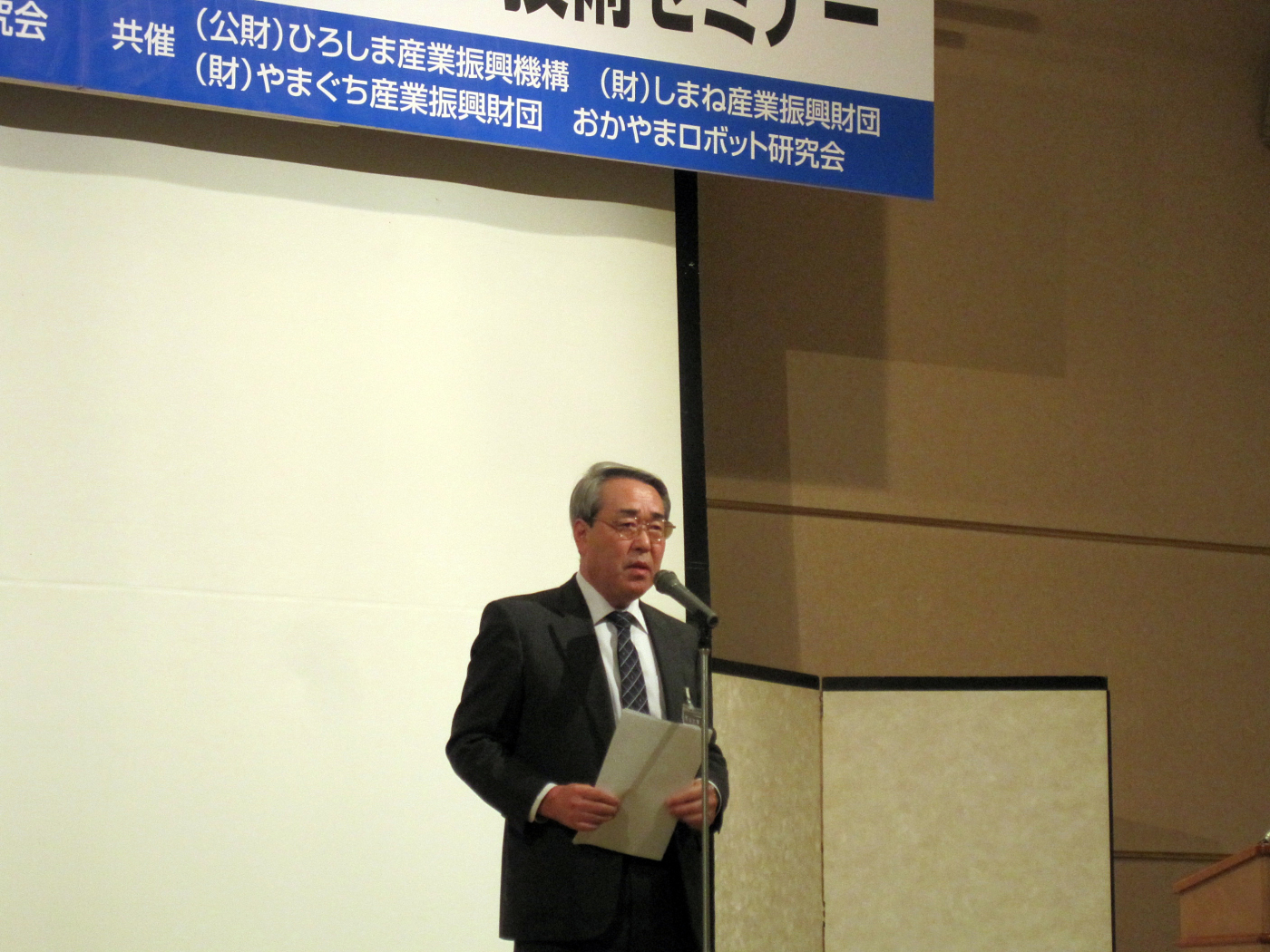 交流会では,おかやまロボット研究会の和田岡大名誉教授のご挨拶がありました。