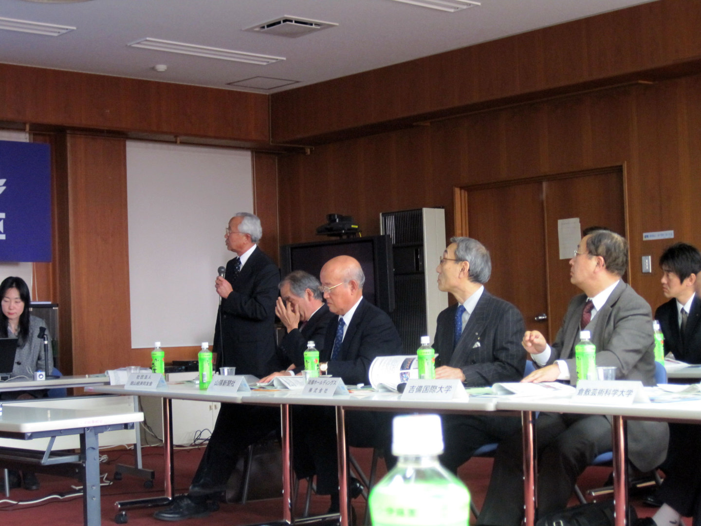 報告発表は,木村先生,佐藤コーディネータ,飯田先生,大﨑先生です。議長は理大・波田学長でした。