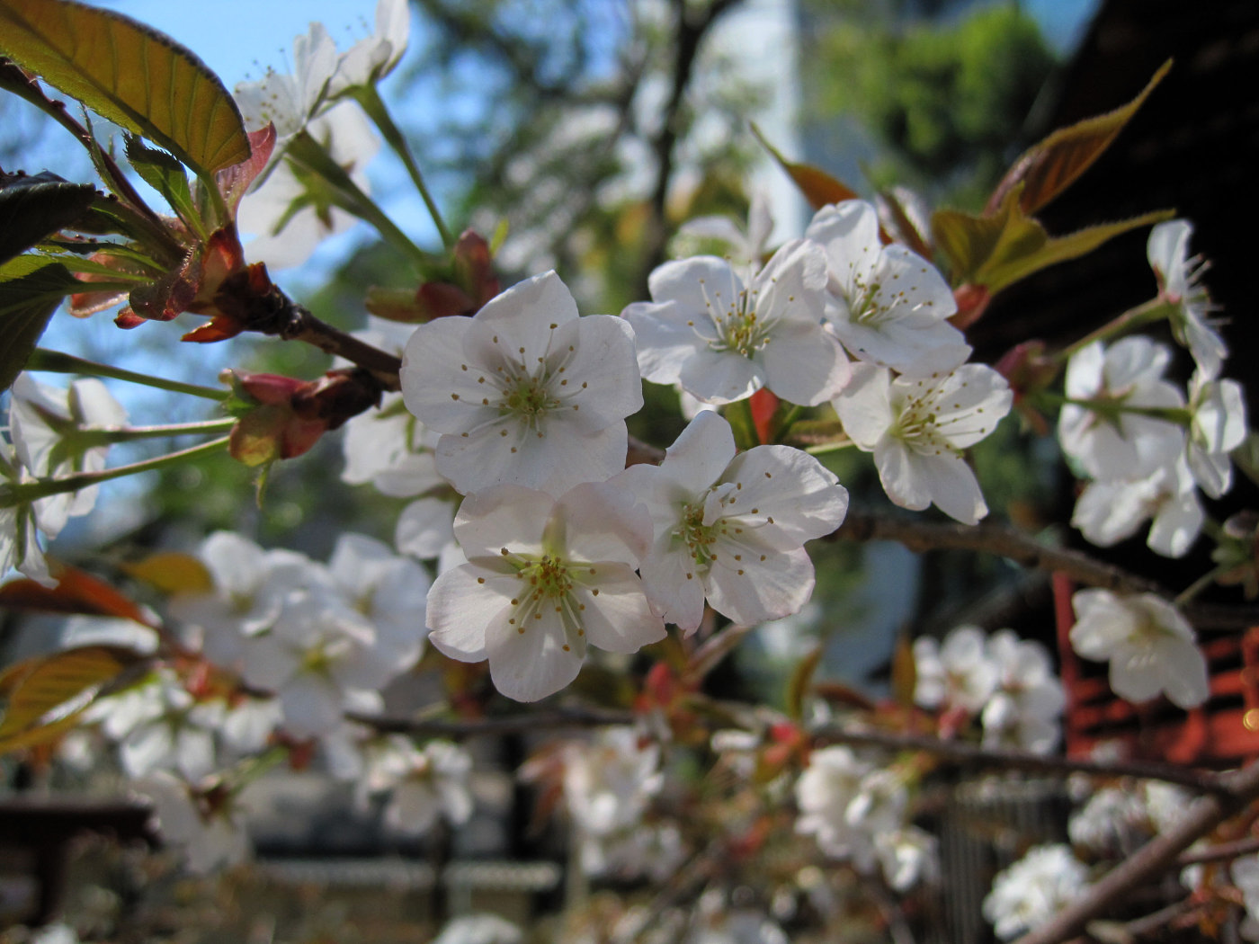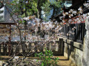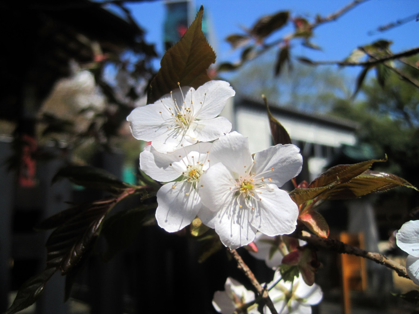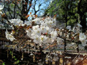 本殿右手の大きな金王桜は,今年も既にかなりの葉桜ですが・・左手の小ぶりの金王桜は,まだまだ,満開に近いです(去年は,こちらも葉桜でした)