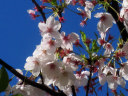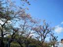 小さな遊園地に桜があって・・・葉桜に近いですが,それでも残っている花は,青空によく映えています。
