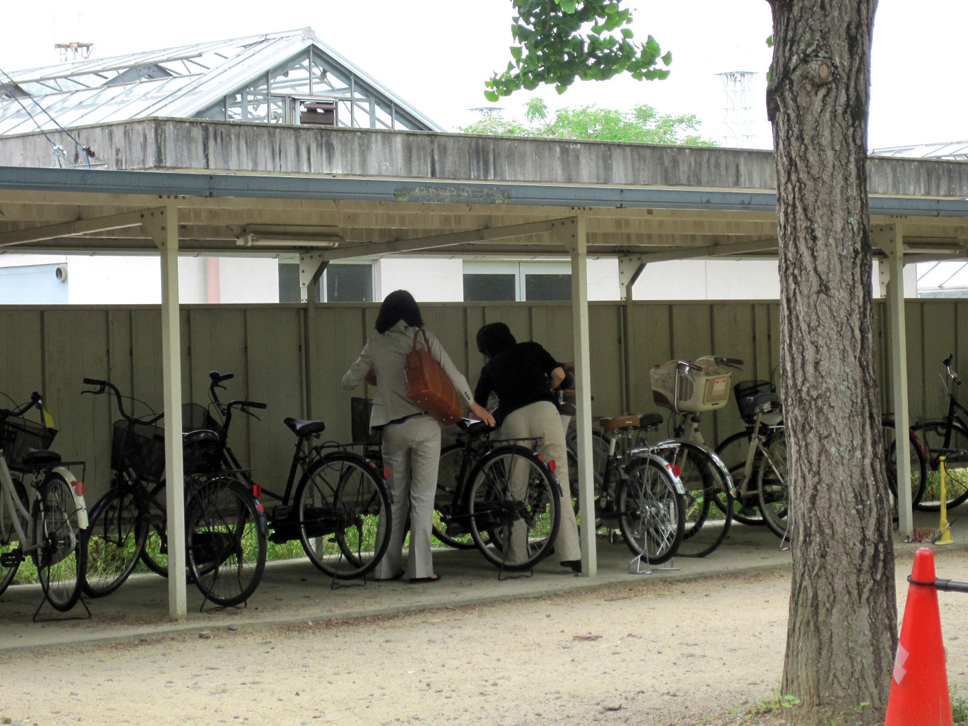 ちなみに,今年からの李先生も聴きにきました。ママチャリです。