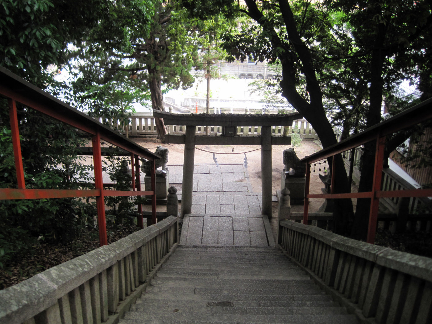 境内社もひっそりと・・・。そして,別の所に鳥居があって,池が設えてありました。