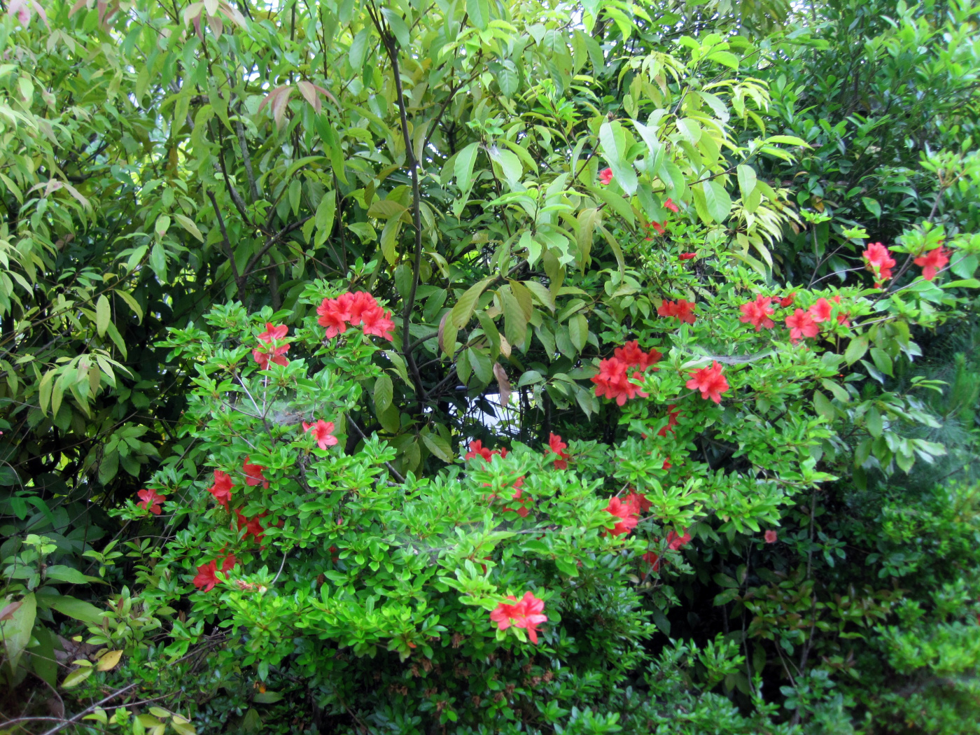 駐車場の裏は,山並みです・・・新緑と,花々が,それでも,気持ちを和ませます。