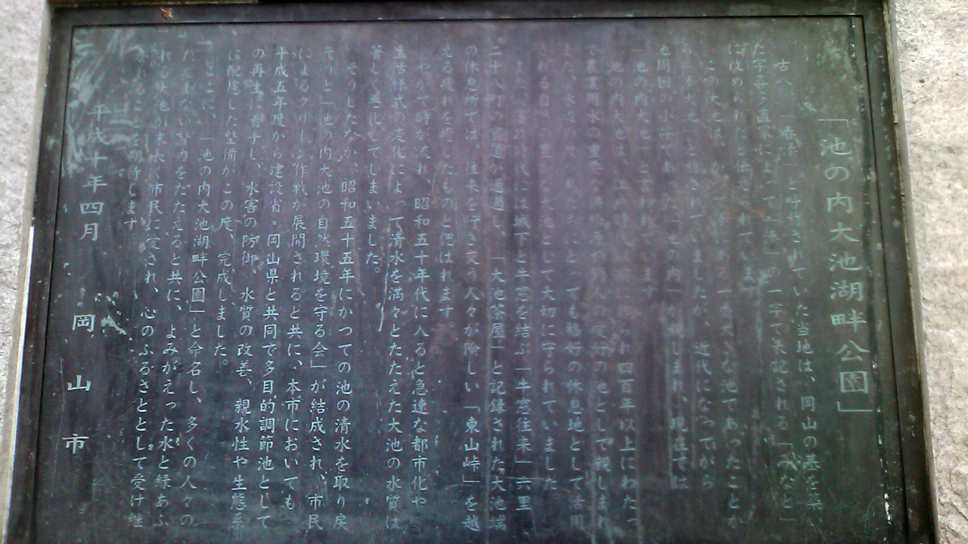 【『吉備温故秘録』による牛窓往来の説:岡山城下−門田村(玉井宮の下茶屋あり、これより上坂なり)−峠茶屋−大池茶屋−円山村−倉田村−倉富村−倉益村−沖新田−金岡村−新村−乙子村−神崎村−幸田村−邑久郷村−下阿知村−上阿知村−千手村−鹿忍村−牛窓港 6里28町(約25km)】ということで,この大池茶屋の所が,この場所ですね。
