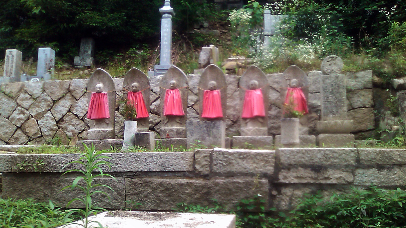 県道の反対側の斜面は,墓地です,六地蔵もいらっしゃいました。