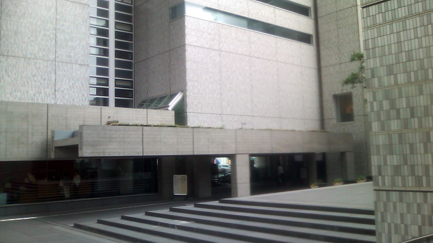 いつもの,山陽新聞本社ビルの前の・・・広場から・・別ビルに上がります。