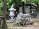 さて,出て行く辺りには,石垣ですが,元々何かあったのかな? 片山神社の参道の脇の道をもどります。