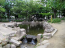 和風の庭園っぽい場所もありますが・・・池に落ちている自転車のリムがオブジェの様です。