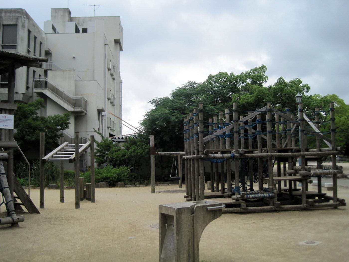 忠魂碑が一番高い辺りで,北側へ越えると,プールや図書館や,子供広場などのある処へ出ます。