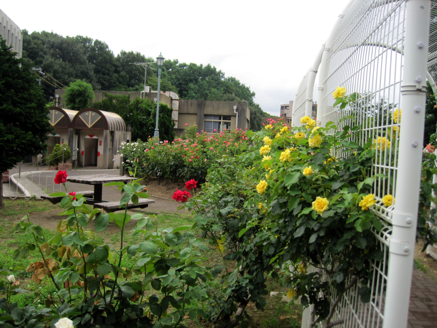 その向こうには,バラ園なのですが・・・ここ数日の暑さに花々も参っている様子でした。