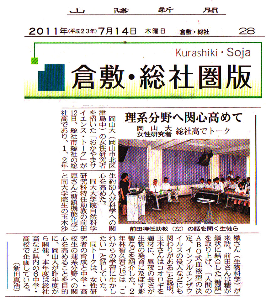 まずは,14日・・・3月までうちの教室にいてくれた前田先生(現在は岡山大学大学院自然科学研究科(農学部)・・・