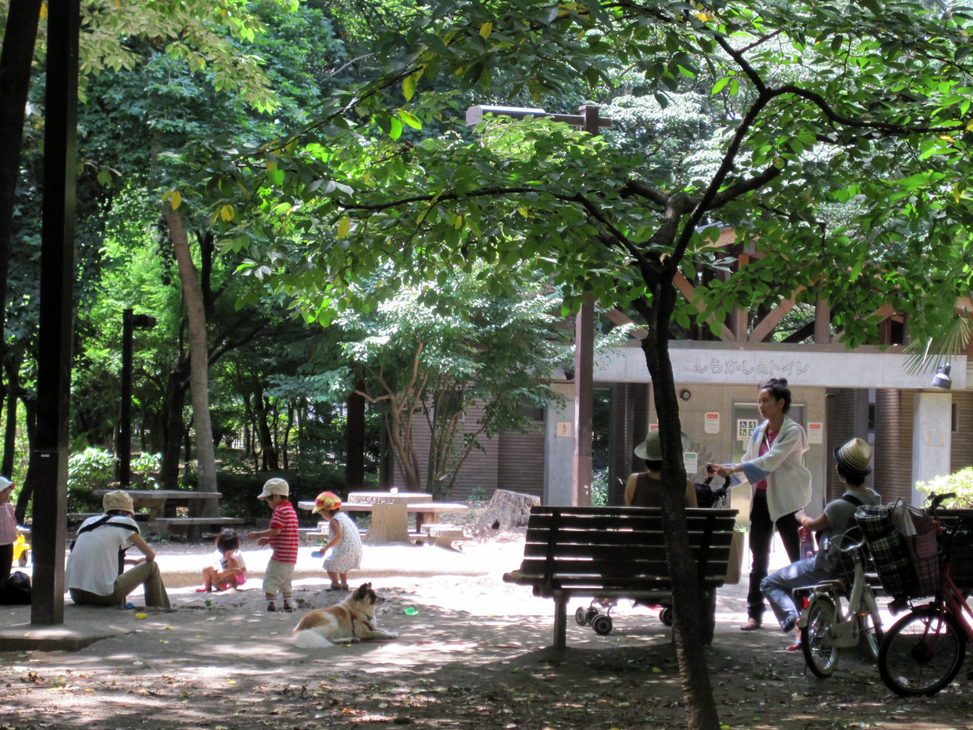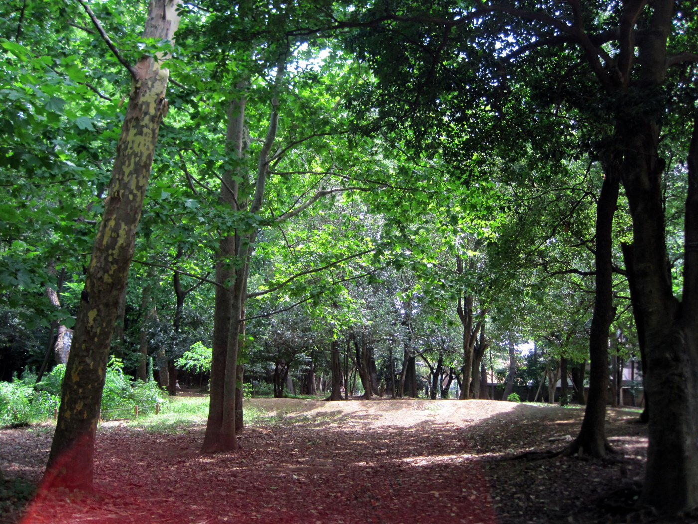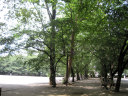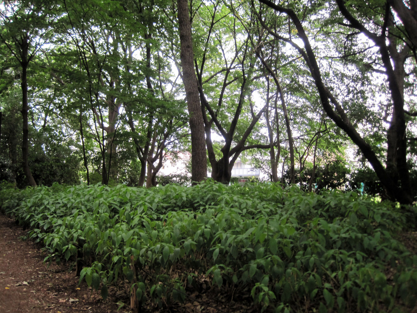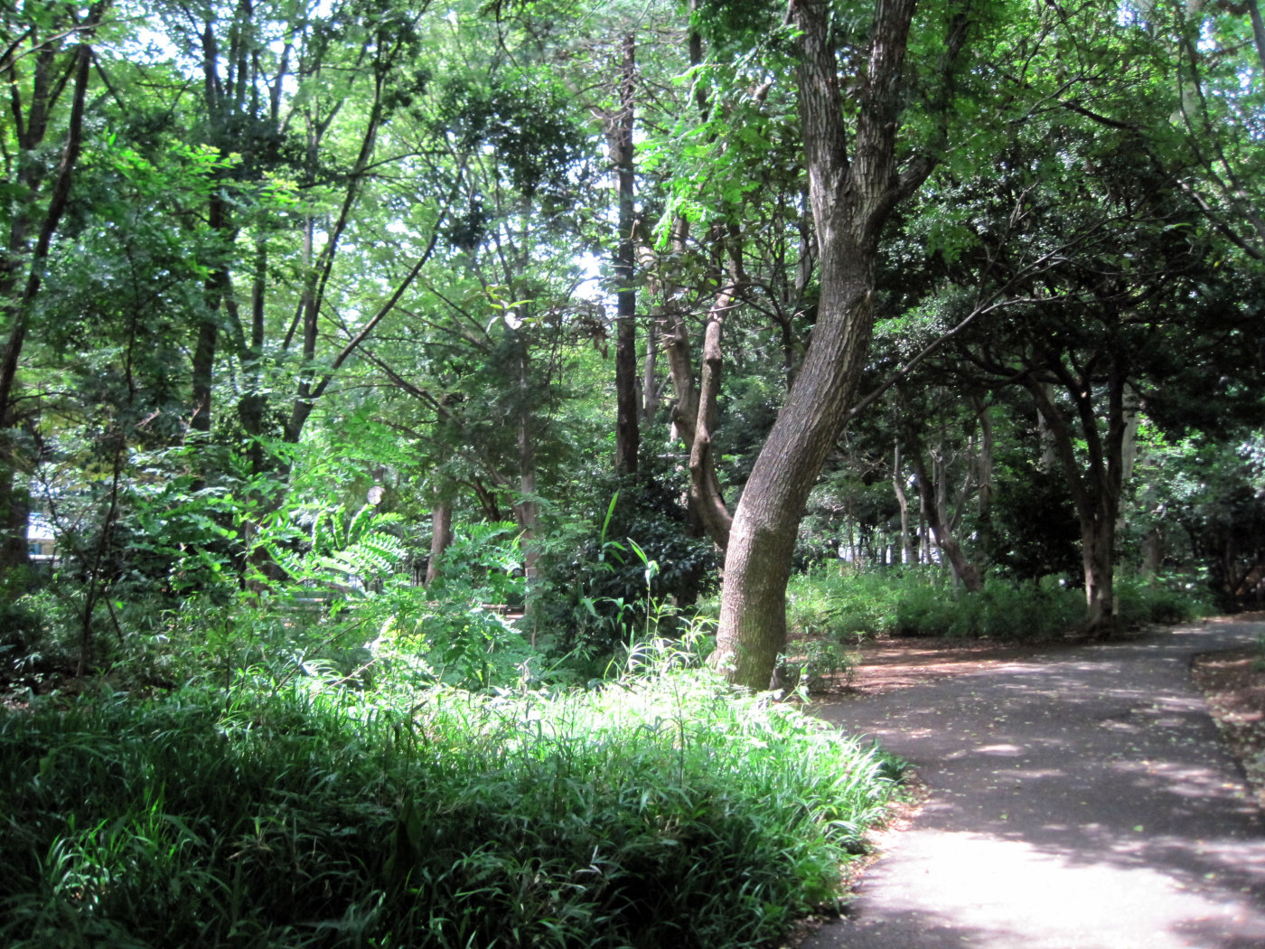 【園内:林業試験場当時の樹木がそのまま残されており、都内でも屈指のケヤキ、クスノキ、プラタナス、ポプラ、スズカケノキなどの巨木がある。その他、カイノキ、ベニカエデ、ヒマラヤゴヨウ等の外国産樹木やアベマキ、ハナガガシ、ニオイドロ等の珍しい木などもあり解説のプレートもつけられている。園内で最も太い木は幹周が3.82メートルのケヤキ。最も高い木は高さ35.5メートルのポプラ。大木の揃った森の他、芝生広場、デイキャンプ施設、夏期に子供が入れるじゃぶじゃぶ池、西側には野球やサッカーの練習(要申込で試合は不可)にも使用できるグラウンドも整備されている。】ということです。