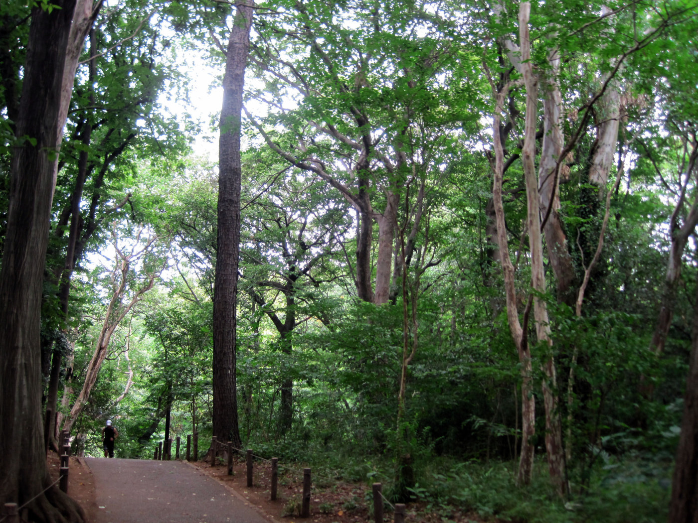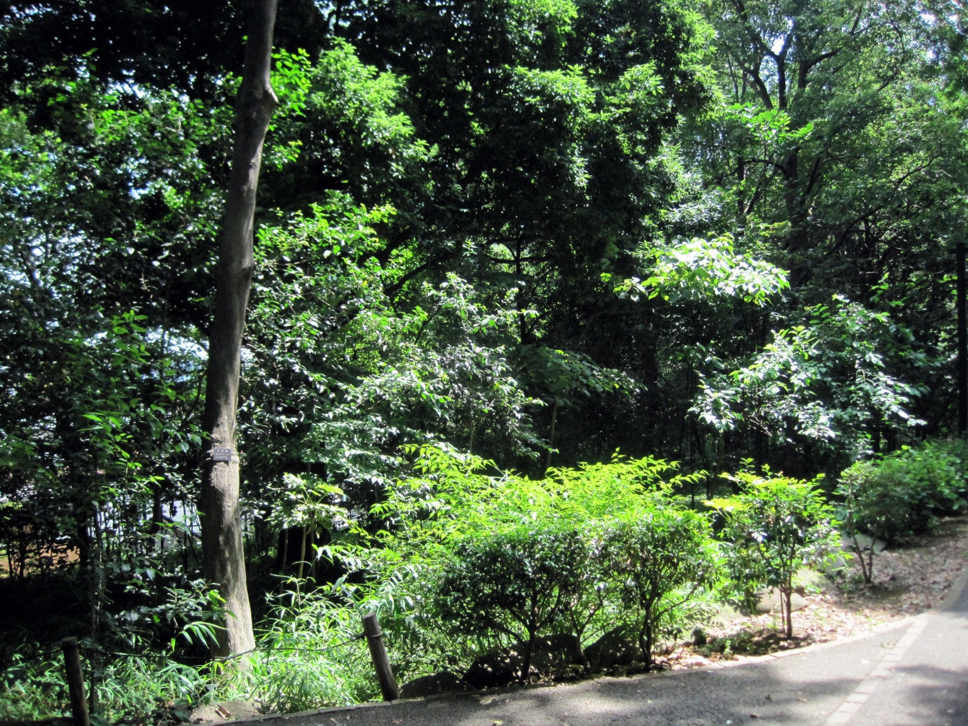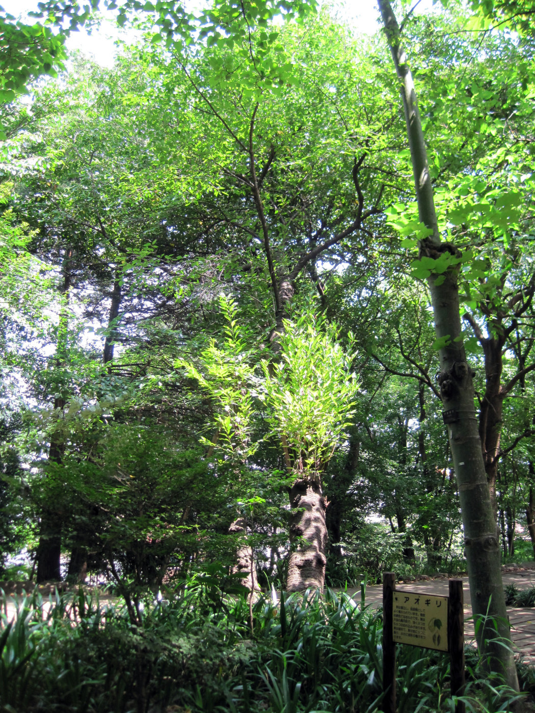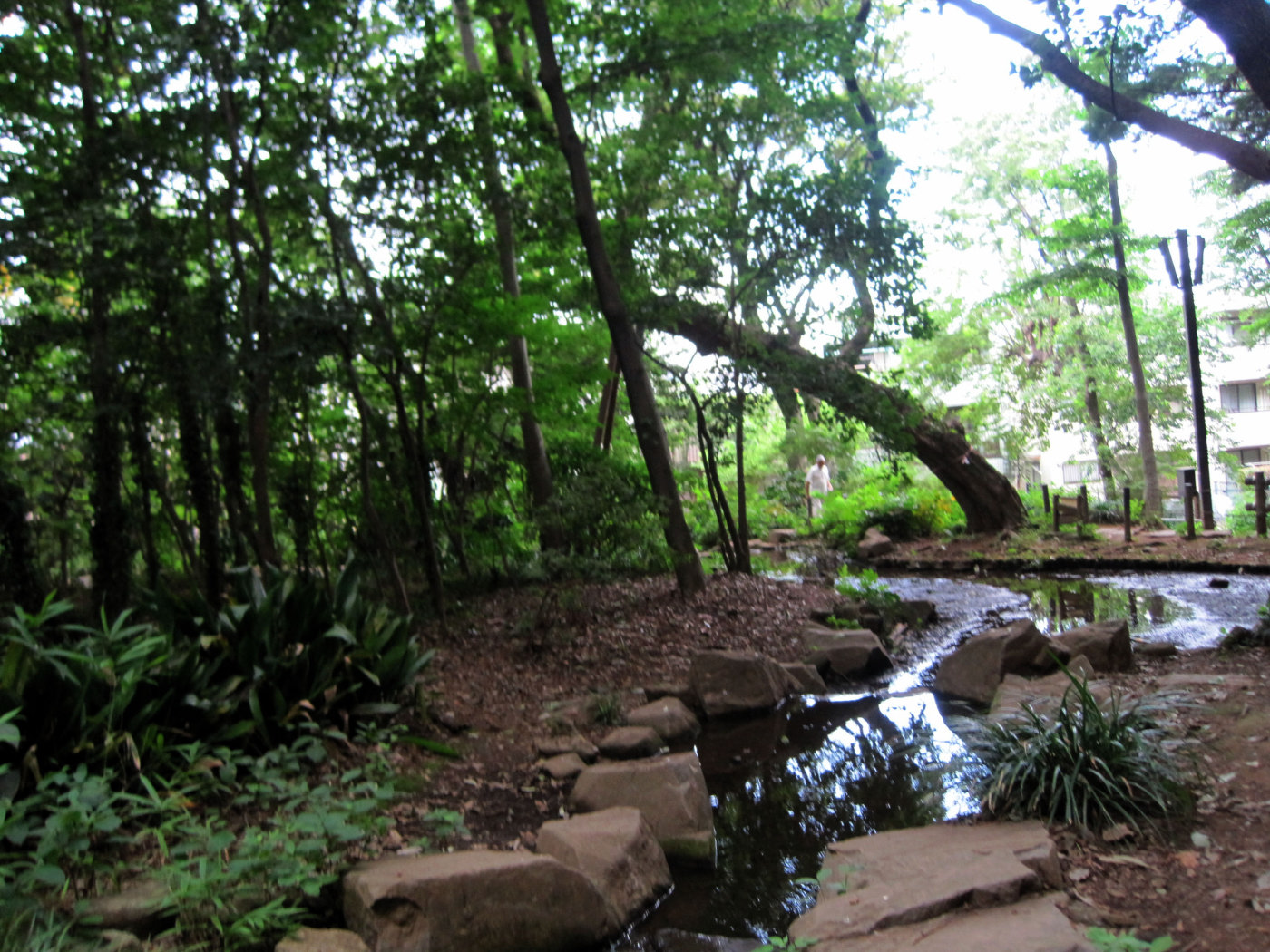 【園内:林業試験場当時の樹木がそのまま残されており、都内でも屈指のケヤキ、クスノキ、プラタナス、ポプラ、スズカケノキなどの巨木がある。その他、カイノキ、ベニカエデ、ヒマラヤゴヨウ等の外国産樹木やアベマキ、ハナガガシ、ニオイドロ等の珍しい木などもあり解説のプレートもつけられている。園内で最も太い木は幹周が3.82メートルのケヤキ。最も高い木は高さ35.5メートルのポプラ。大木の揃った森の他、芝生広場、デイキャンプ施設、夏期に子供が入れるじゃぶじゃぶ池、西側には野球やサッカーの練習(要申込で試合は不可)にも使用できるグラウンドも整備されている。】ということです。