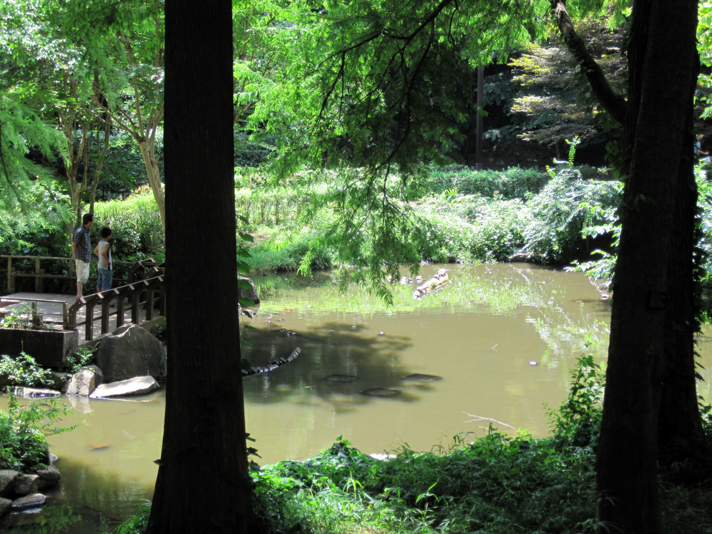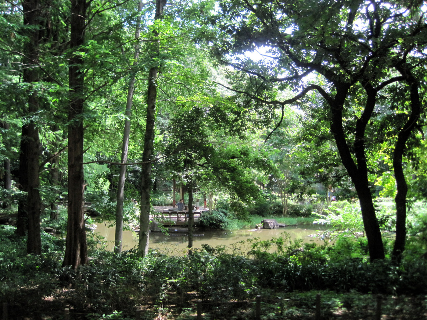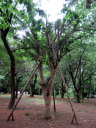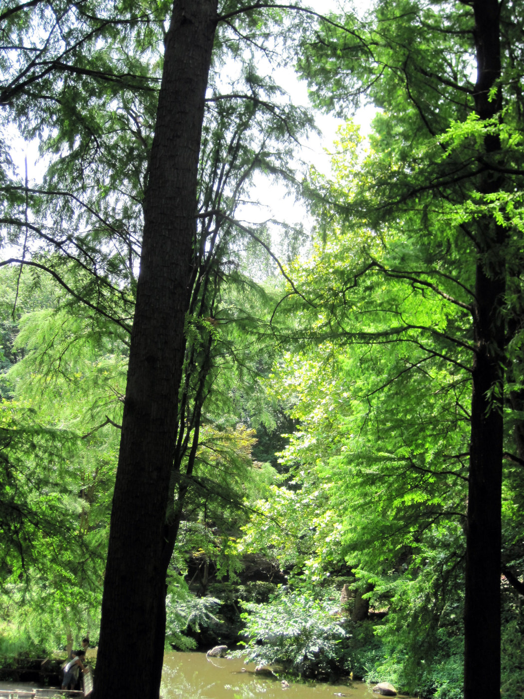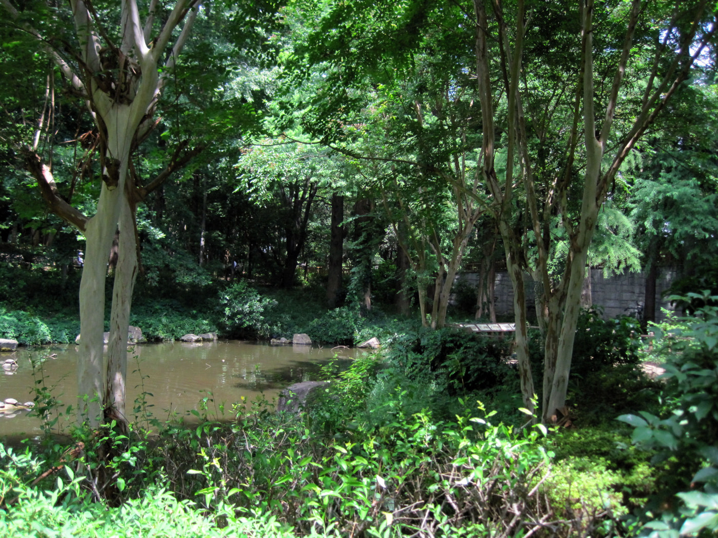 【園内:林業試験場当時の樹木がそのまま残されており、都内でも屈指のケヤキ、クスノキ、プラタナス、ポプラ、スズカケノキなどの巨木がある。その他、カイノキ、ベニカエデ、ヒマラヤゴヨウ等の外国産樹木やアベマキ、ハナガガシ、ニオイドロ等の珍しい木などもあり解説のプレートもつけられている。園内で最も太い木は幹周が3.82メートルのケヤキ。最も高い木は高さ35.5メートルのポプラ。大木の揃った森の他、芝生広場、デイキャンプ施設、夏期に子供が入れるじゃぶじゃぶ池、西側には野球やサッカーの練習(要申込で試合は不可)にも使用できるグラウンドも整備されている。】ということです。