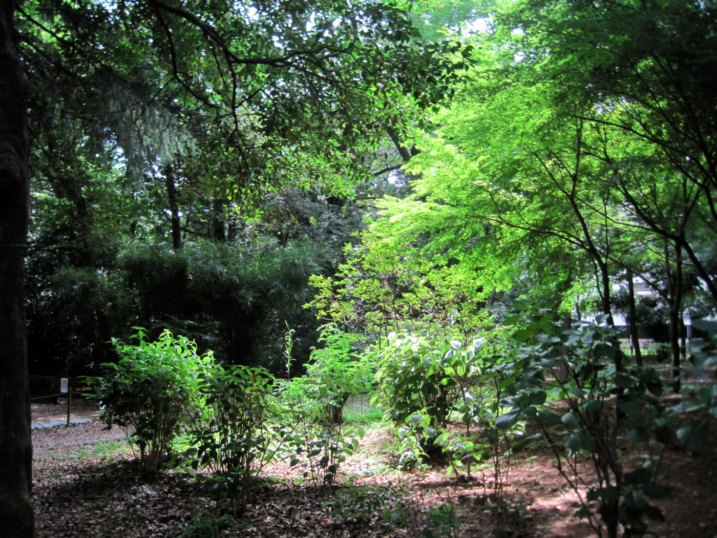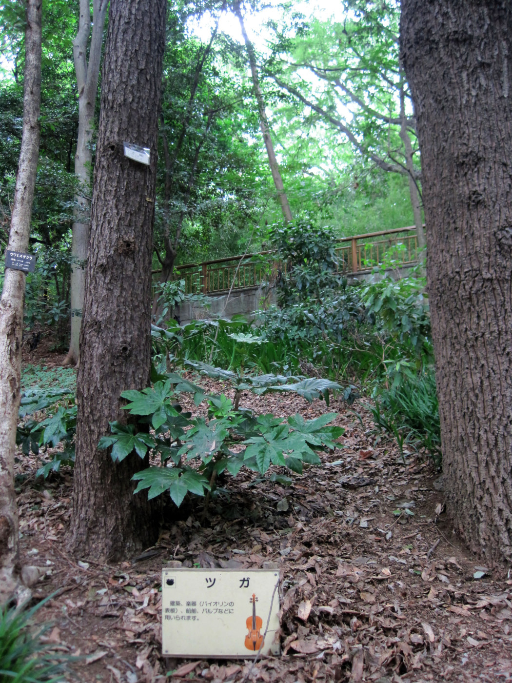 【外国産樹木:園内には約60種の外国産樹木があり、専門家も立ち止まって考え込む程。チンタオトゲナシニセアカシアなど長い名前をもつものや、トチュウなど聞きなれないものもあります。特に東門の一画は外国産針葉樹の見本園的な配植になっています