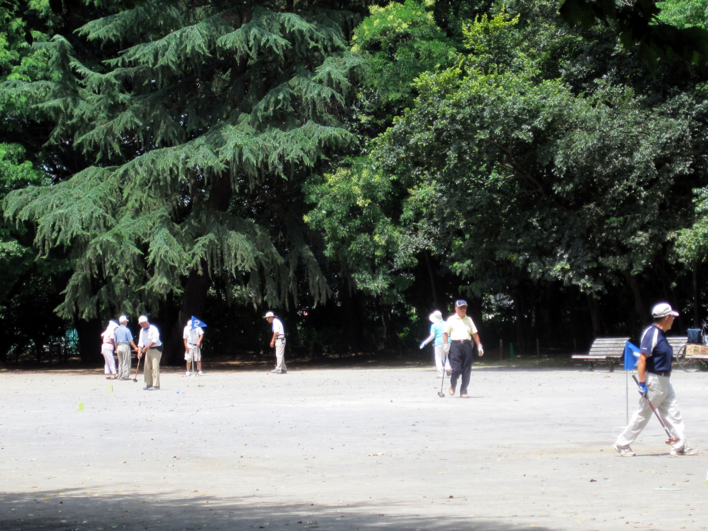 広場では,お年寄りたちも,ゲートボールで元気一杯です。