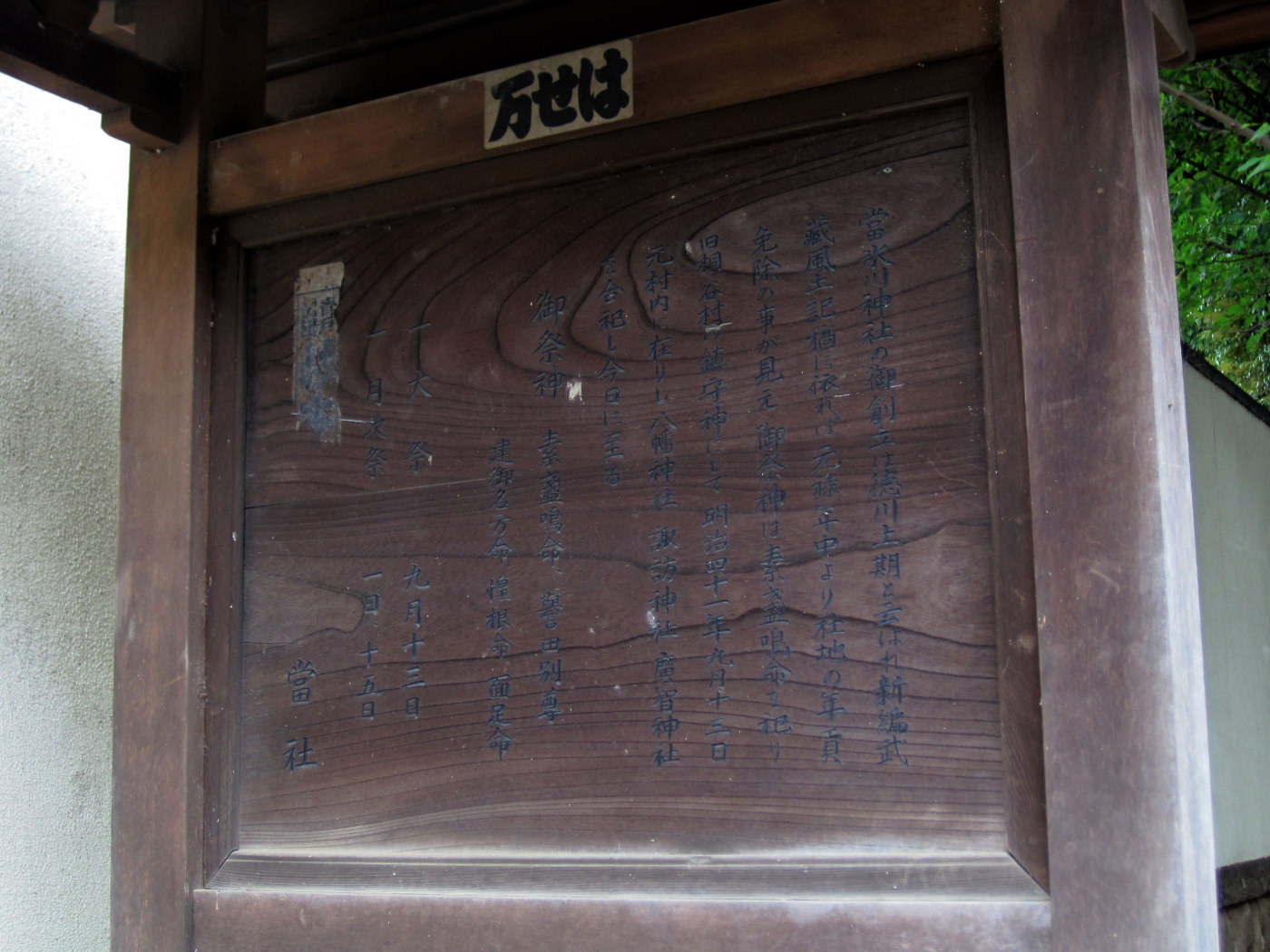 今のレクリエーションの役割をはたしていました。 往古は隣の氷川神社をはじめ、 八幡社、 稲森社の別当として支配していましたが、 明治初年の神仏分離によって、